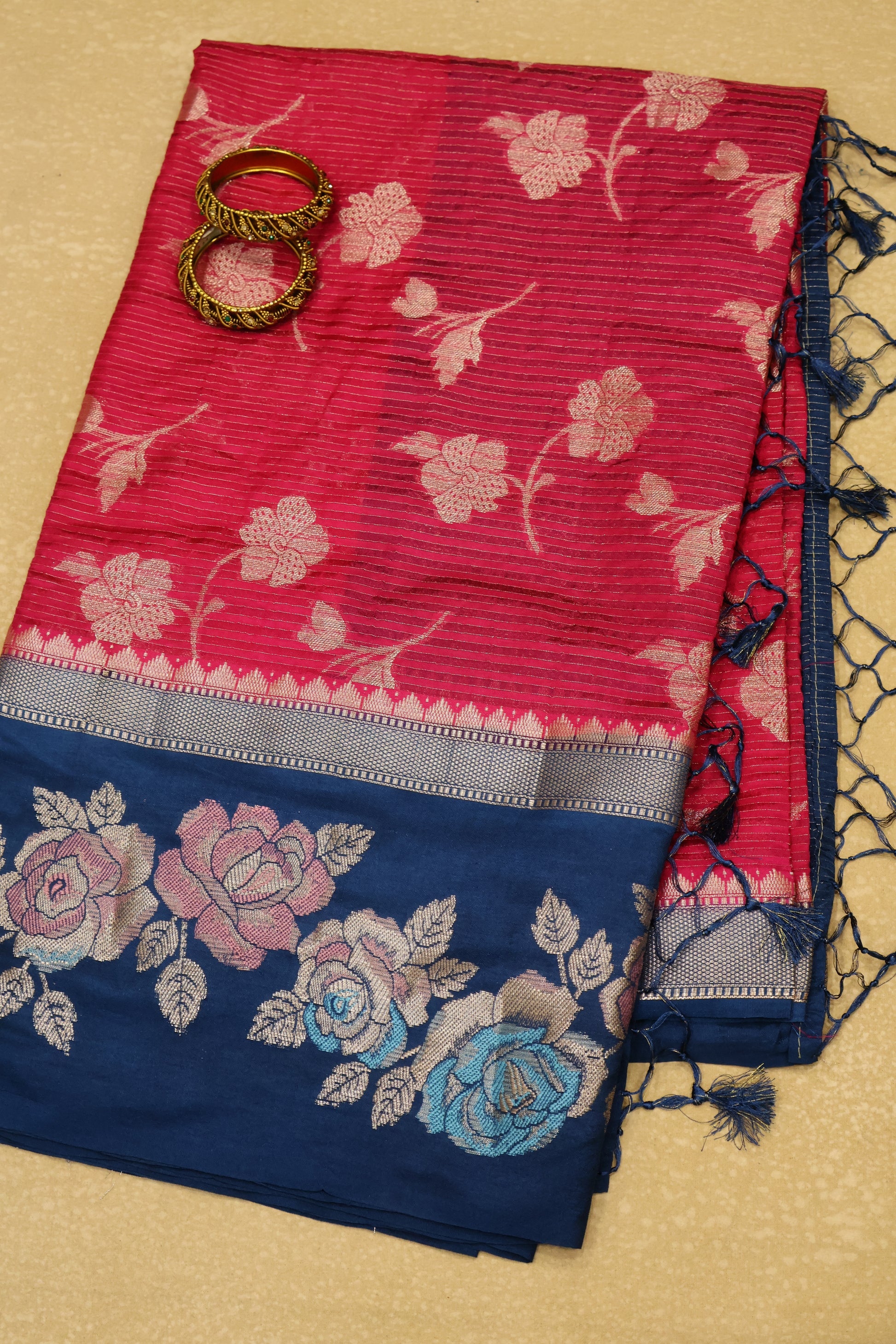 Banarasi Worm Silk Saree-Pink Hibiscus