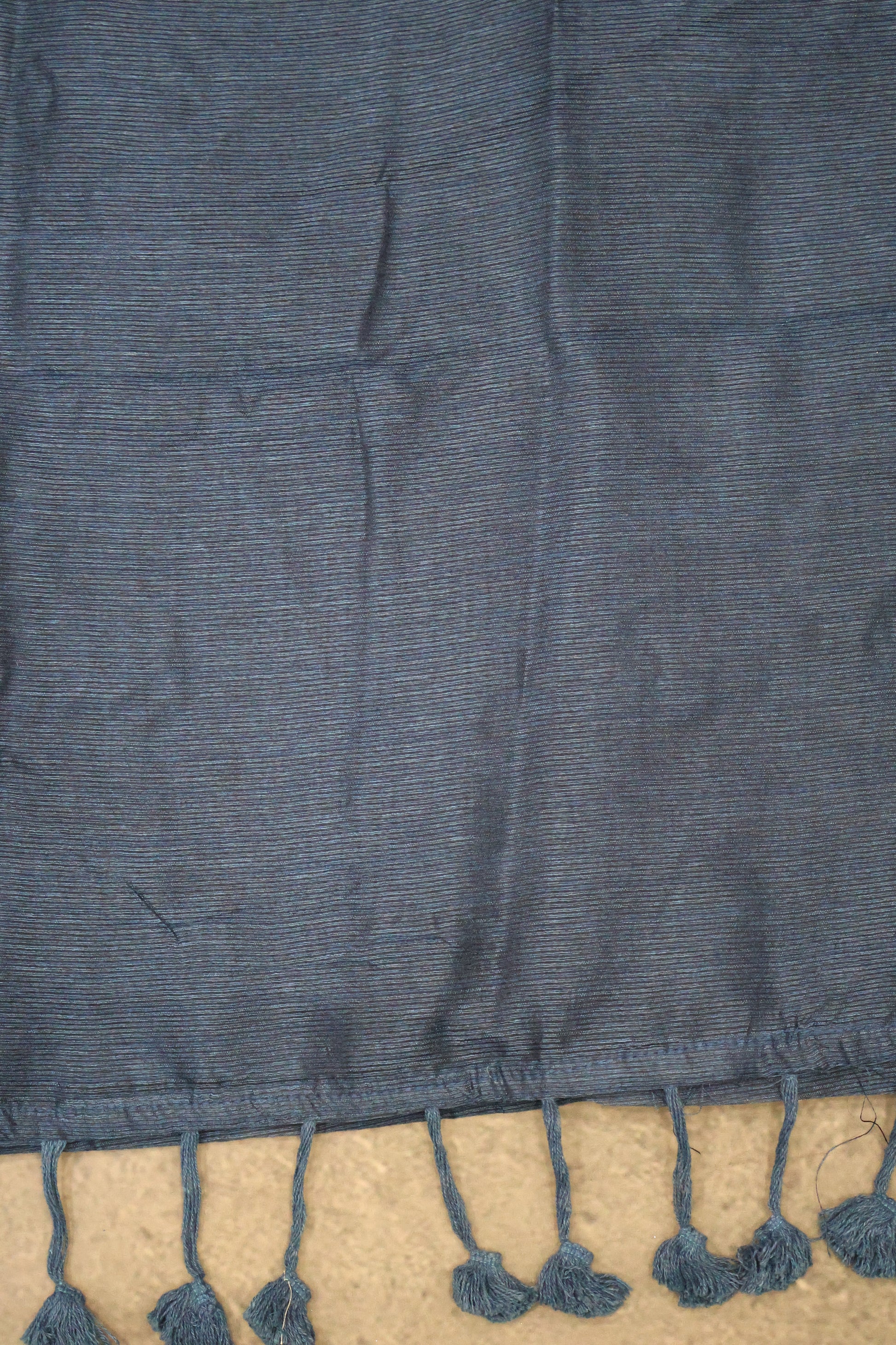 Khadi Cotton Saree-Dark Peacock Blue Plain