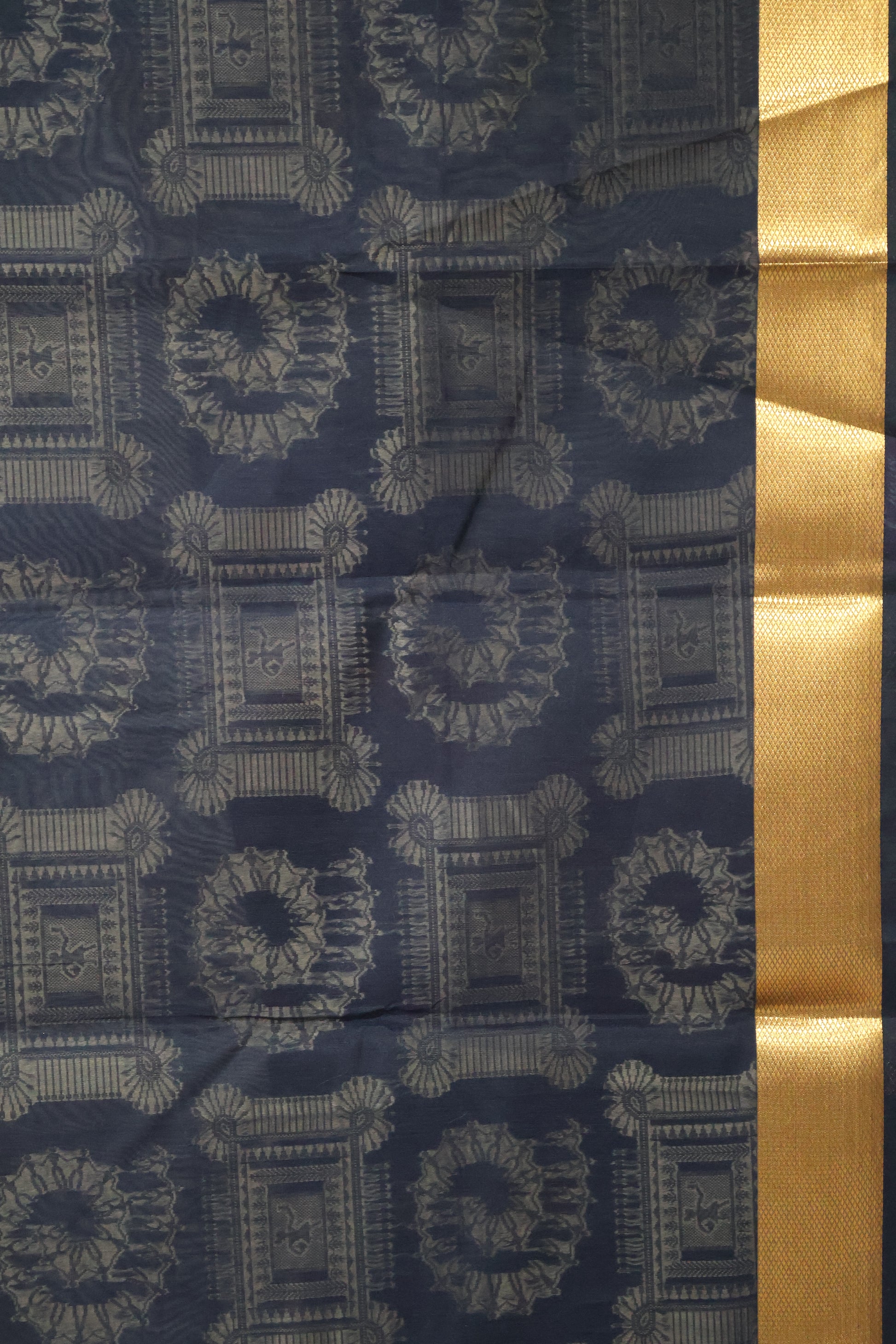 Kora Silk Cotton Saree - Black Frame Warli
