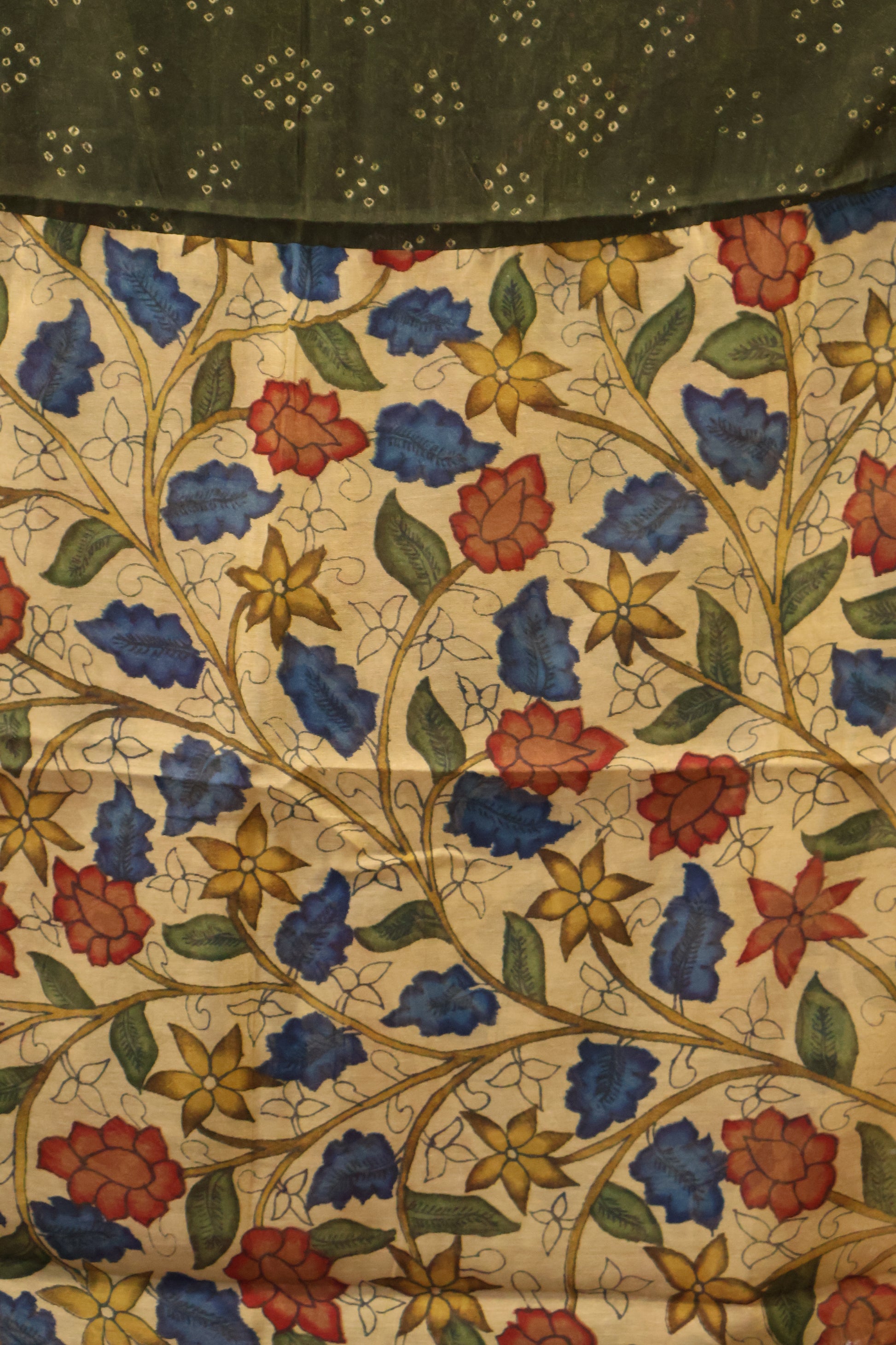 Linen Chanderi Saree-Dark Mehandi Bandini Mirror Work