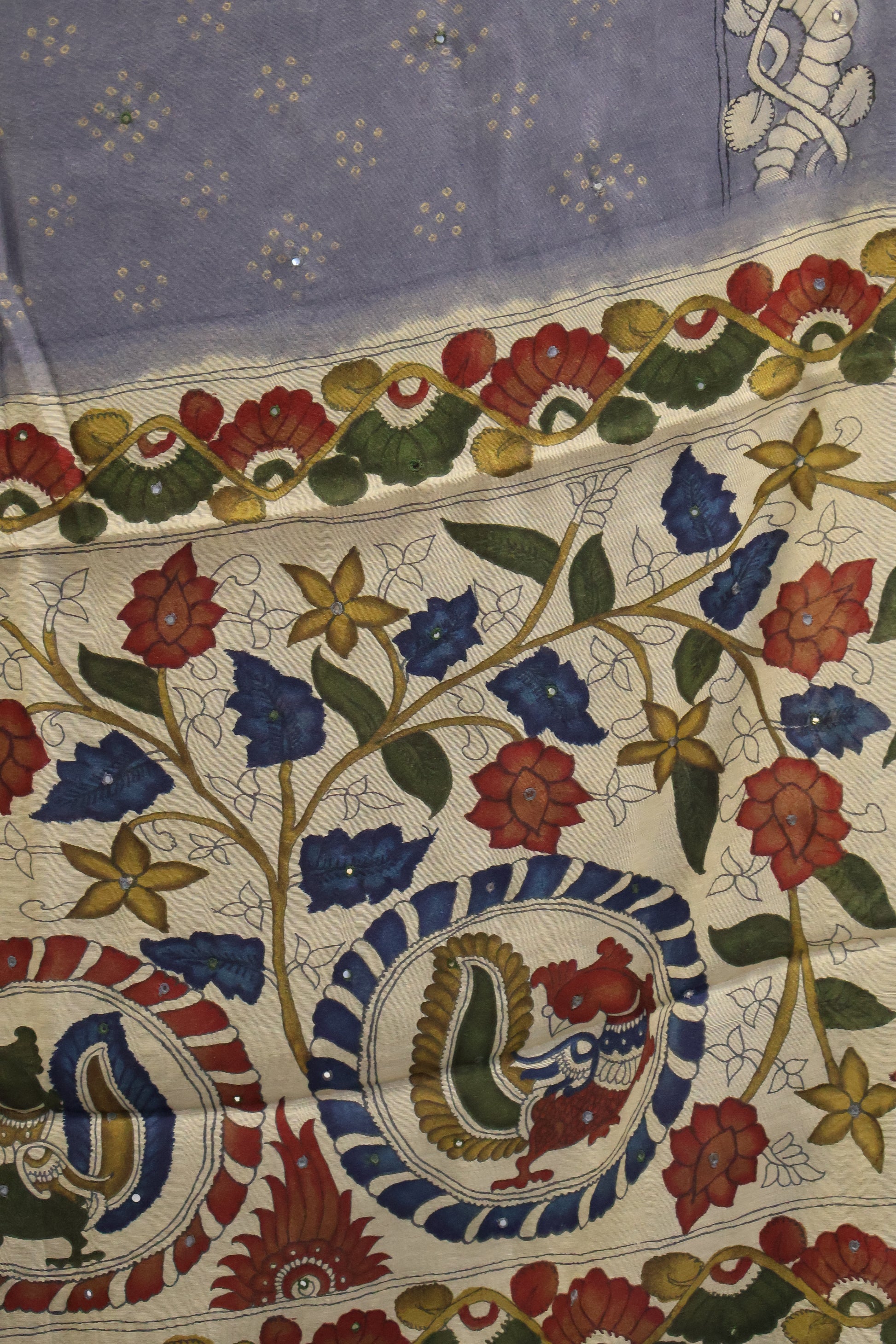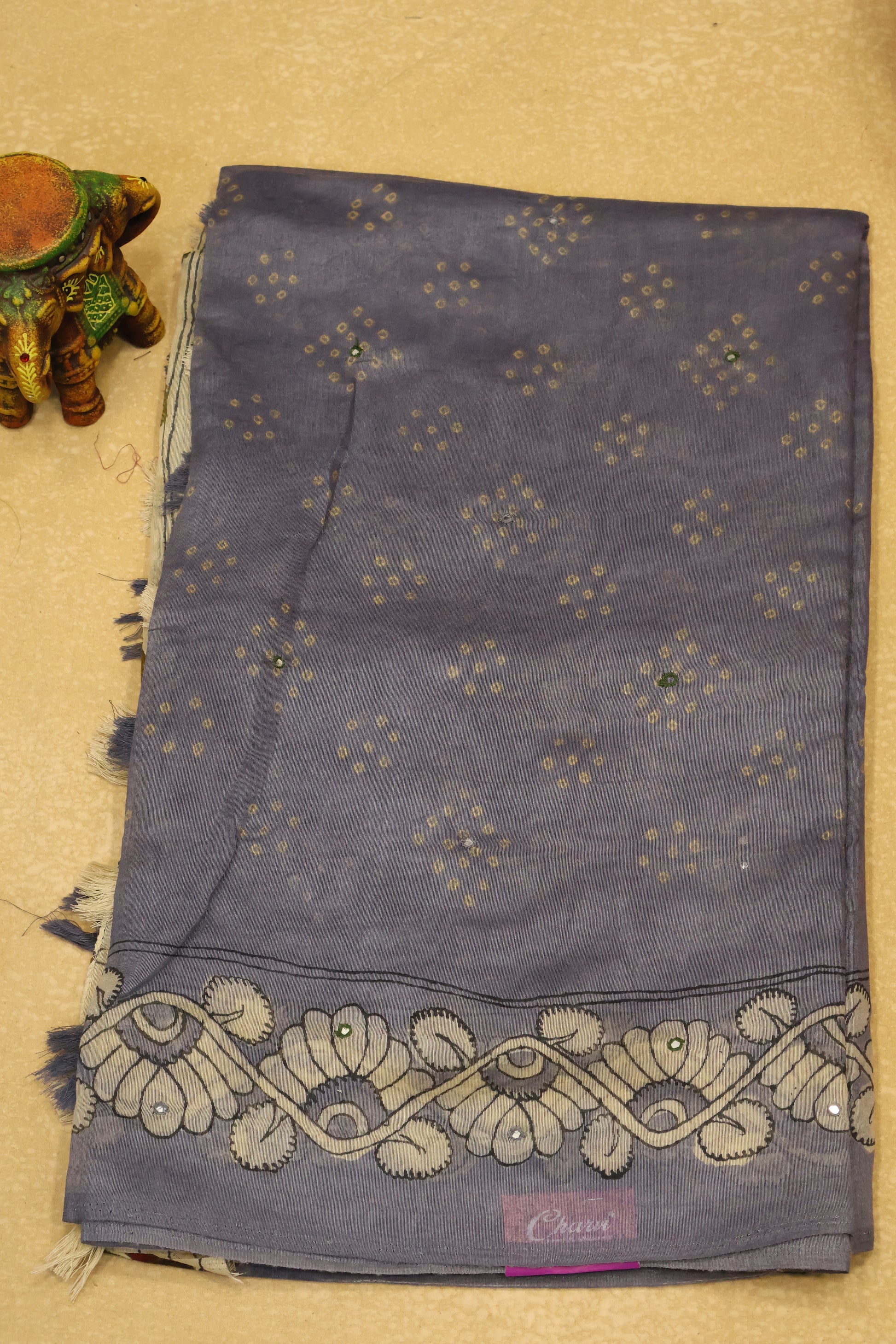 Linen Chanderi Saree-Greyish Blue Bandini Mirror Work