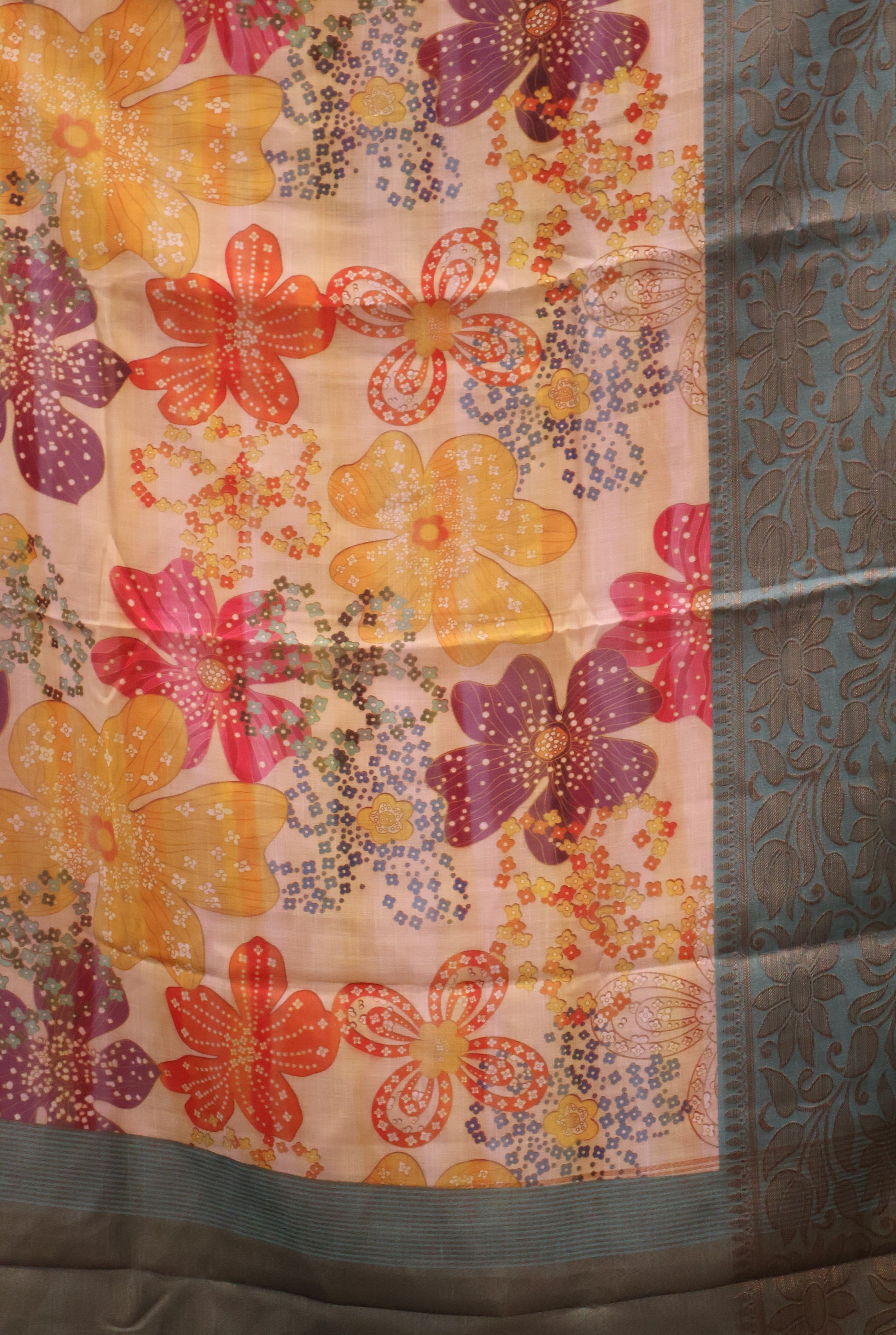 Linen Chanderi Saree-Sea Green Big Border