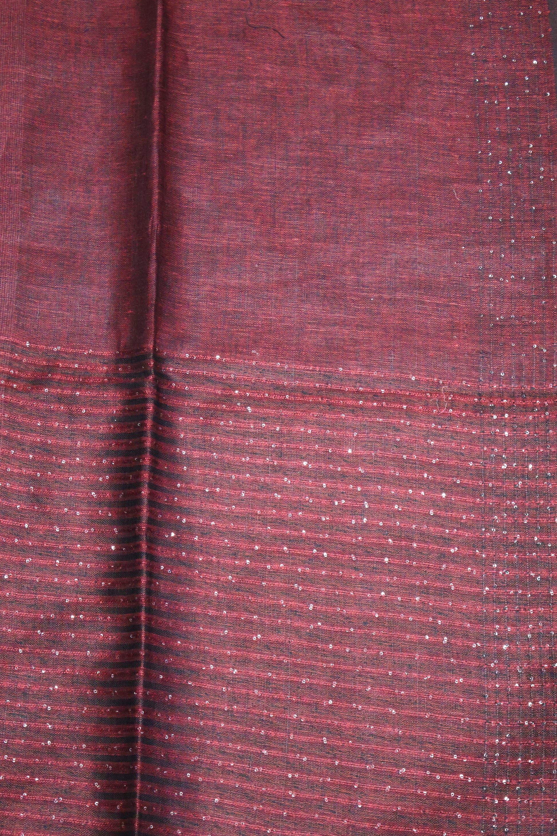 Linen Saree -Maroon Wavy Chumki