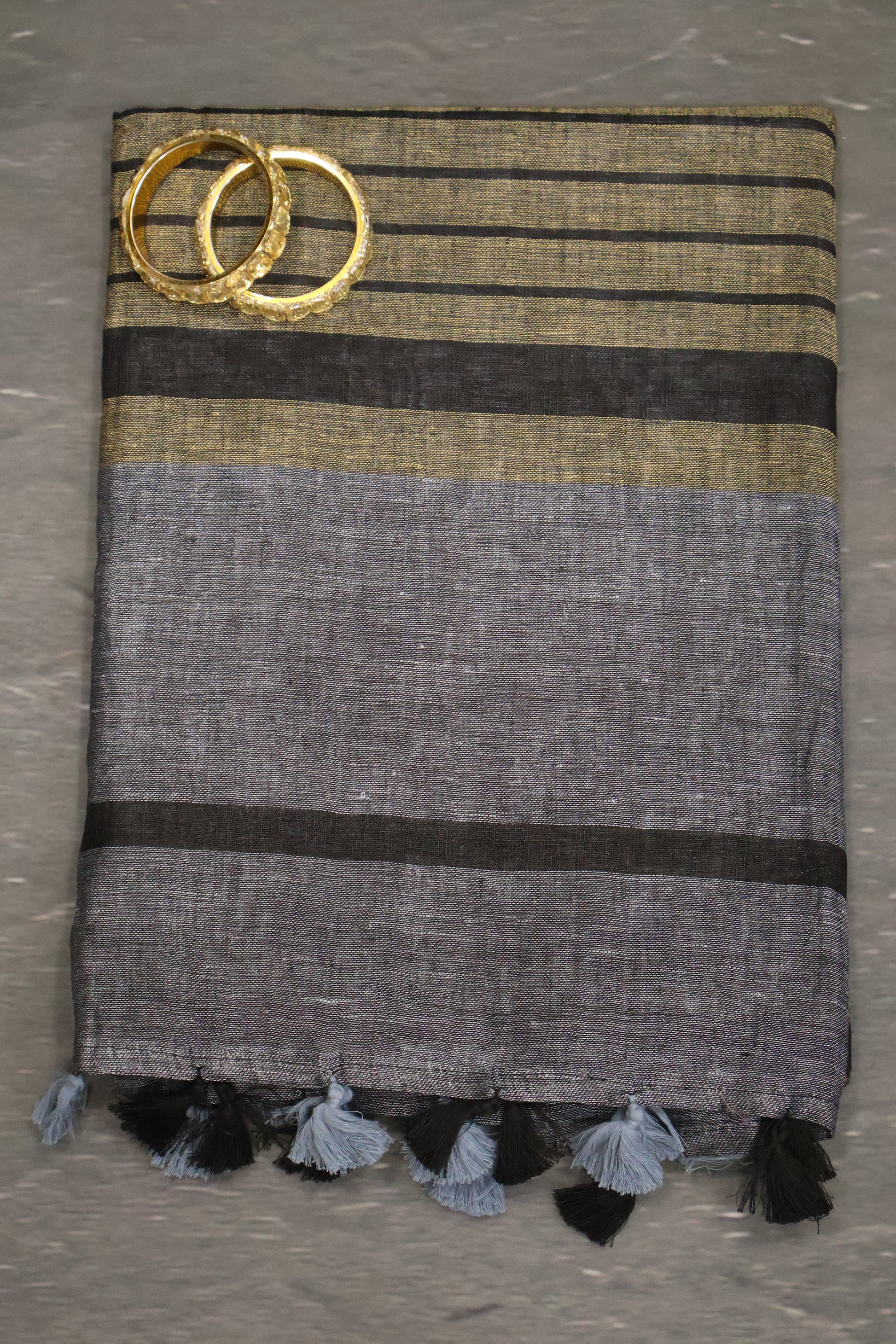 Linen Saree - Line pattern-Beige