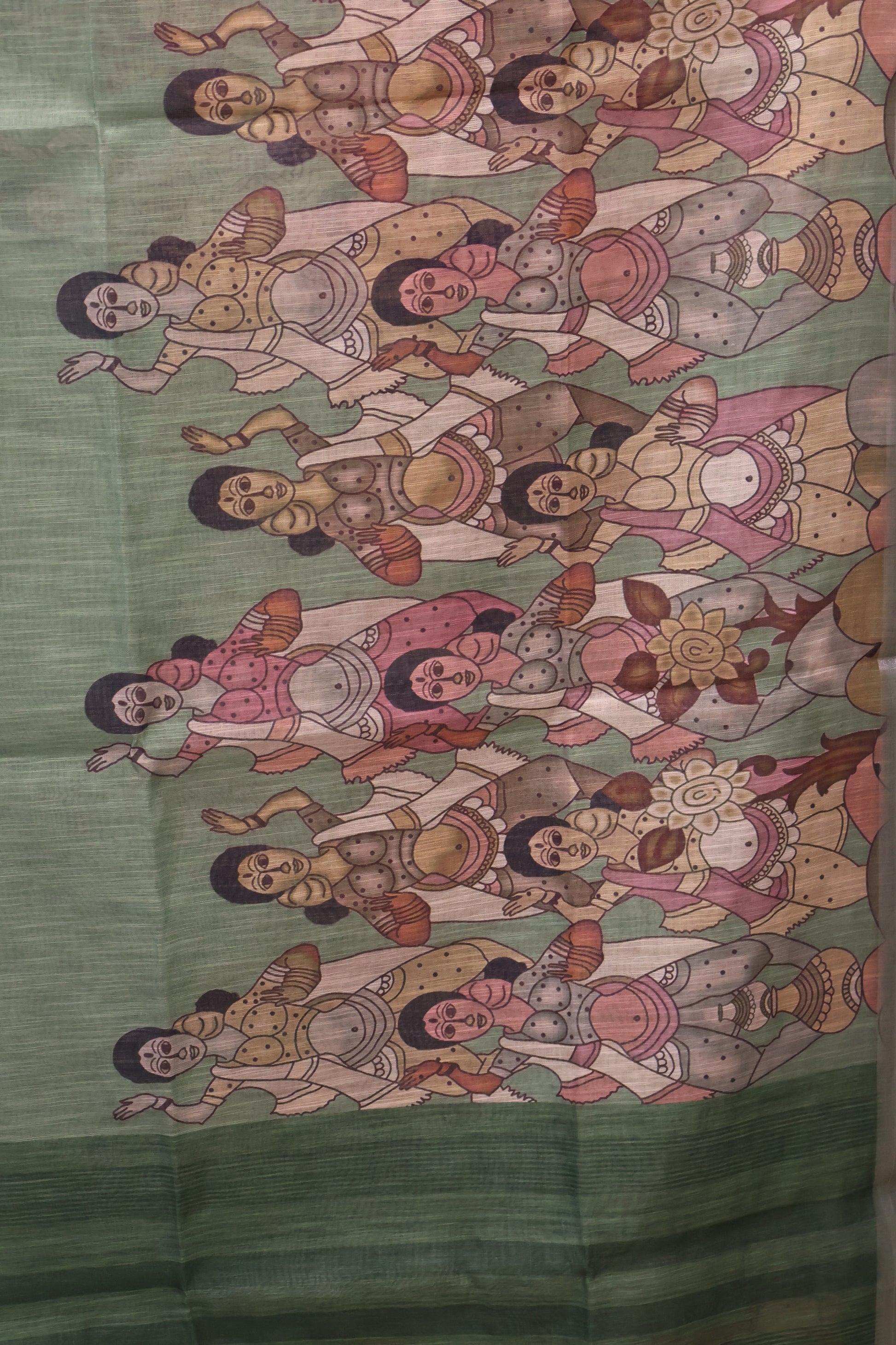 Semi Linen Saree - Penn kalamkari Pattern-Green