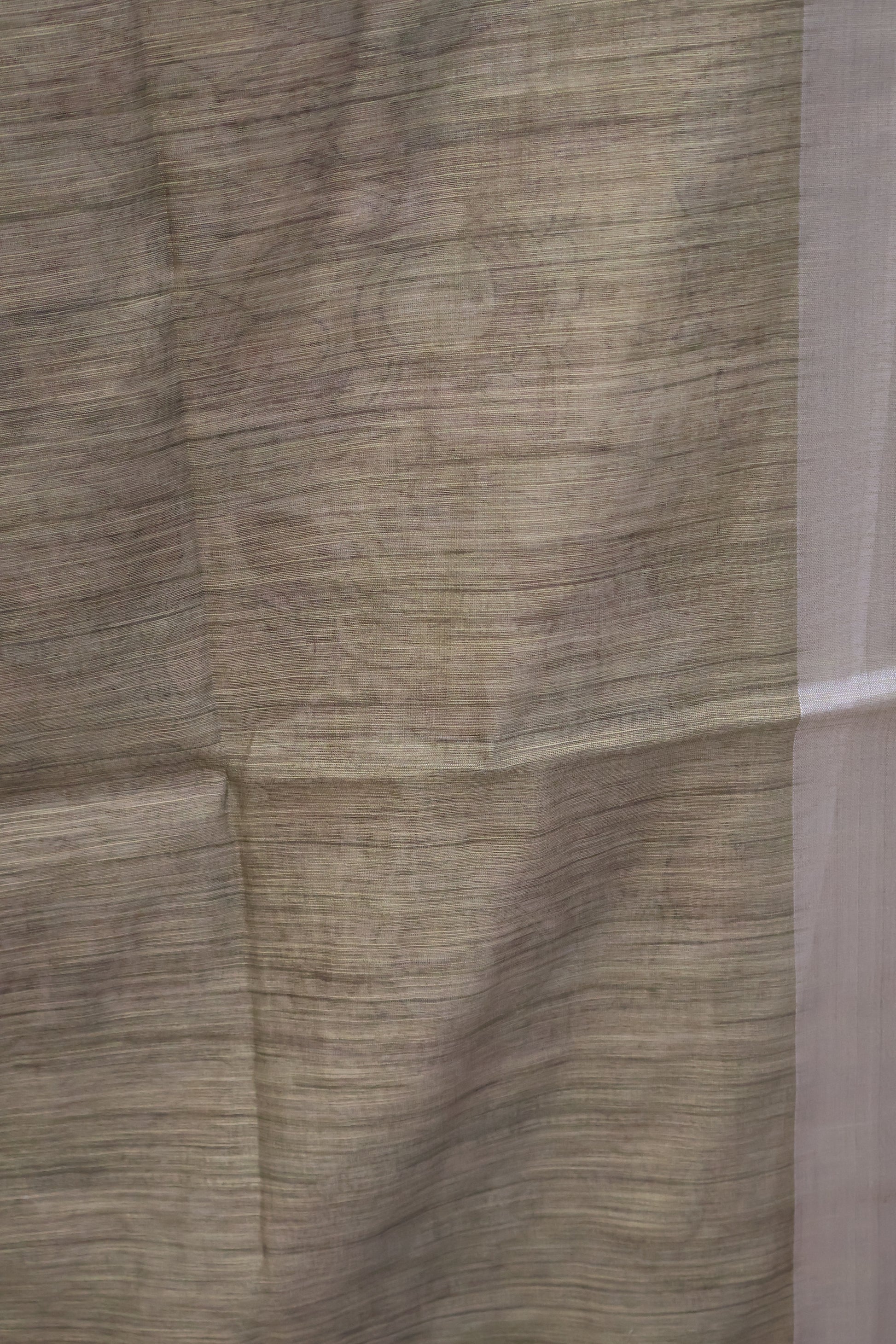 Semi Linen Saree - Penn kalamkari Pattern- Mehandi Green