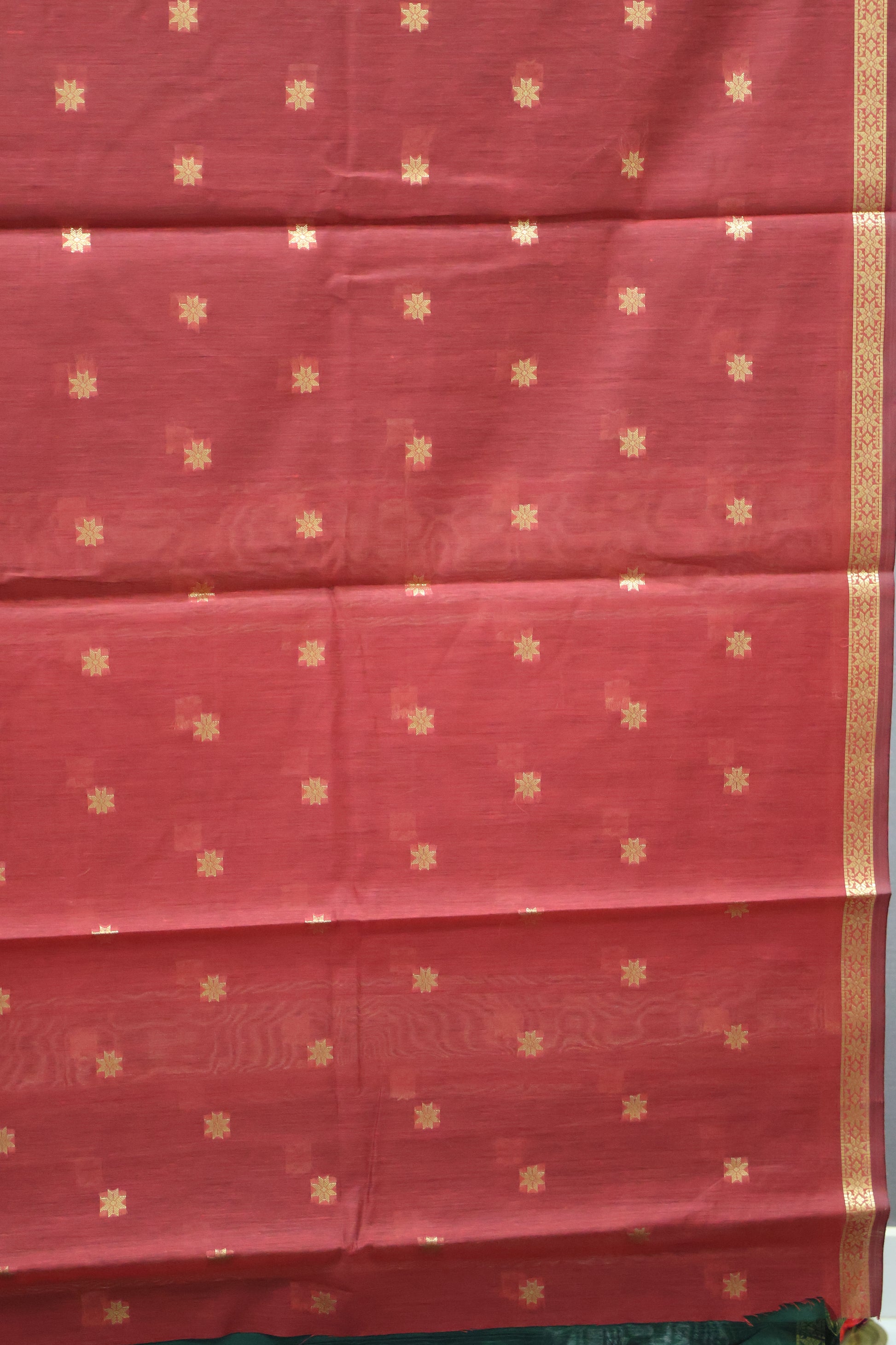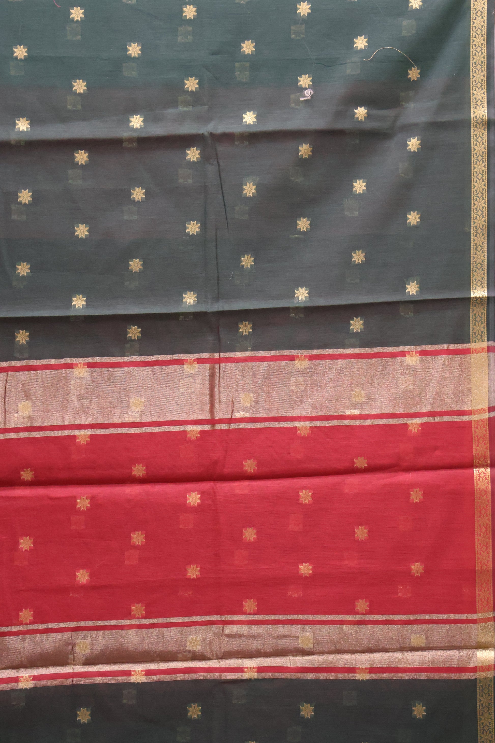Maheswari Cotton Saree - Bottle Green Star Zari Buta