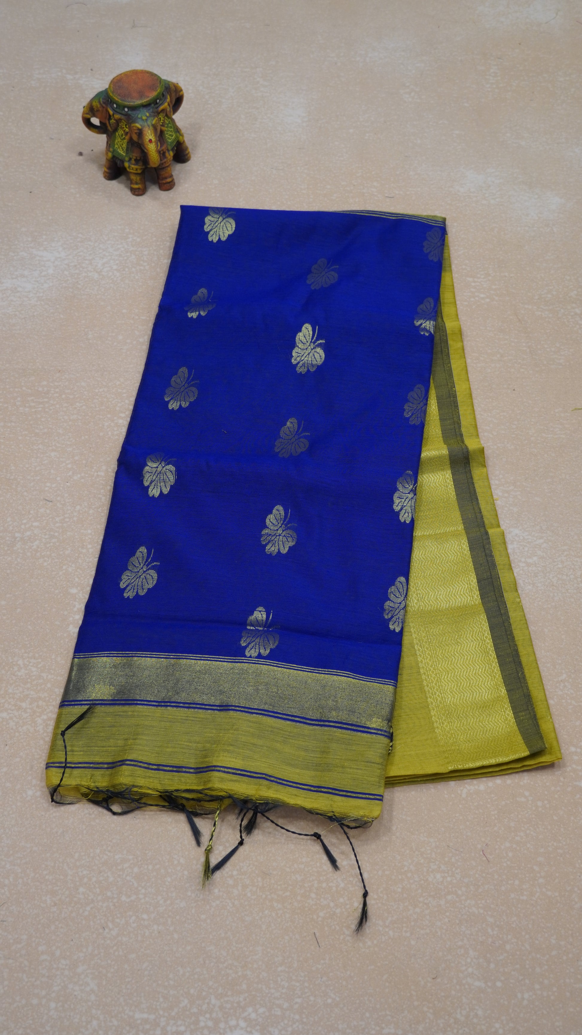 Maheswari Cotton Saree Butterfly Print- Golden Yellow