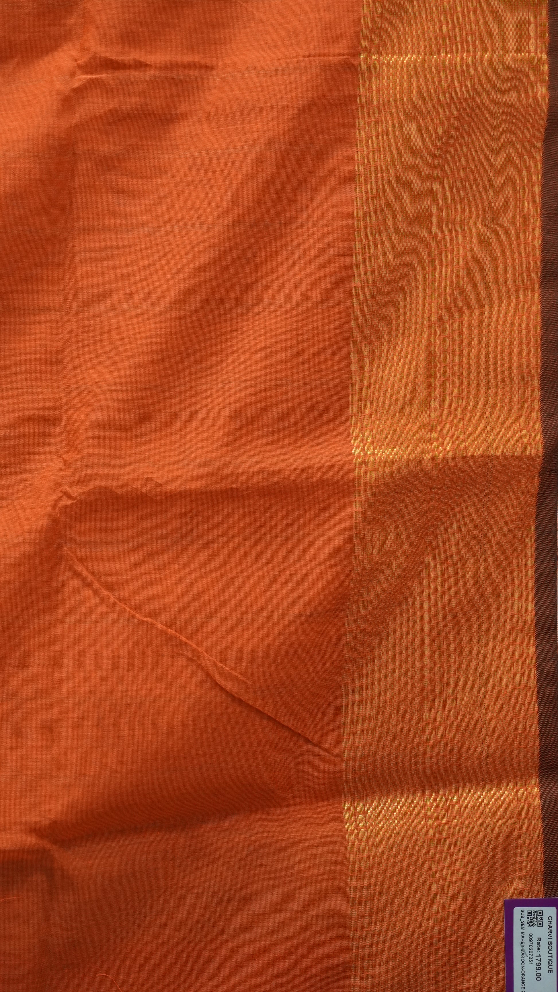 Maheswari Cotton Saree Plain- Maroon