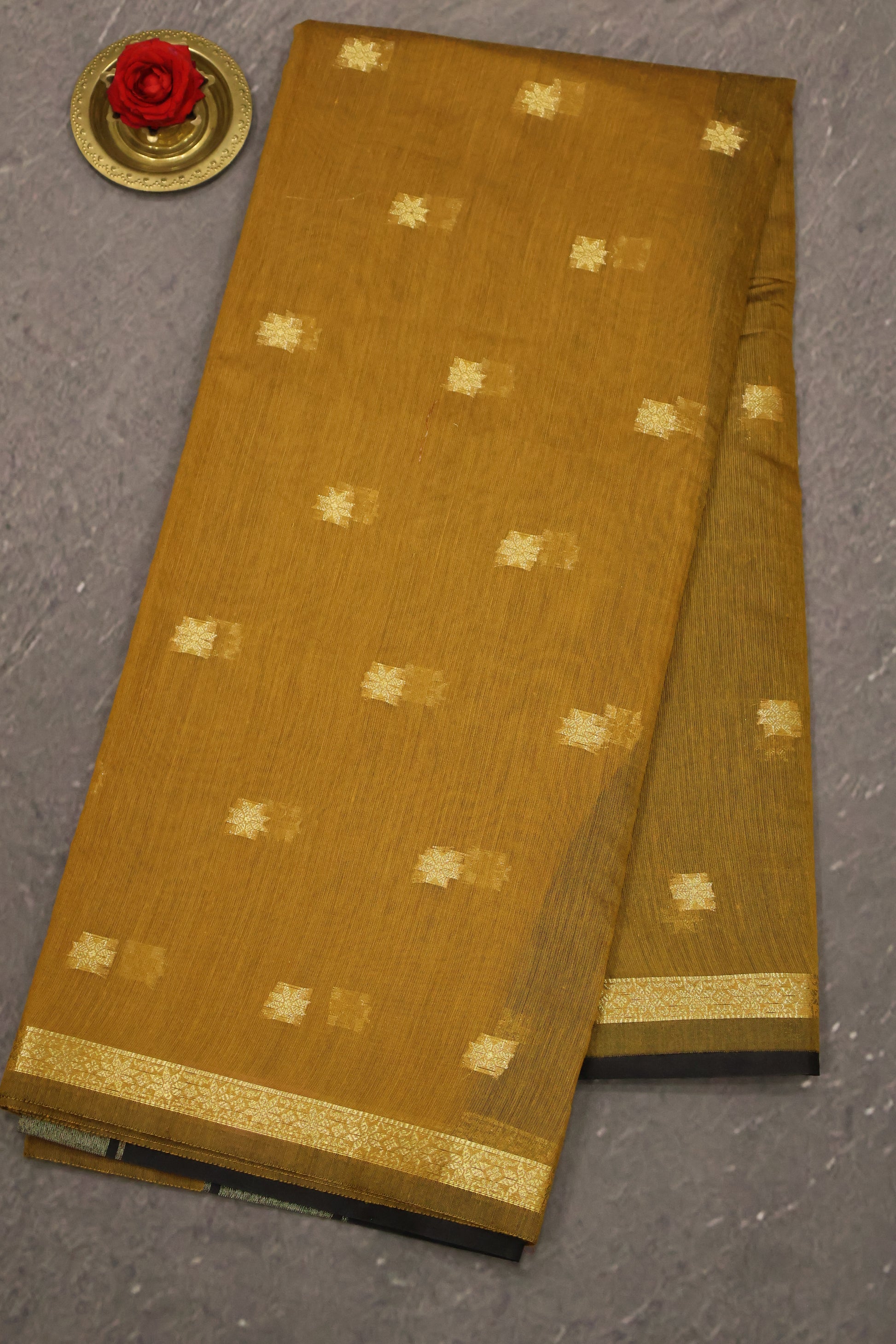 Maheswari Cotton Saree - Golden Brown Star Zari Buta
