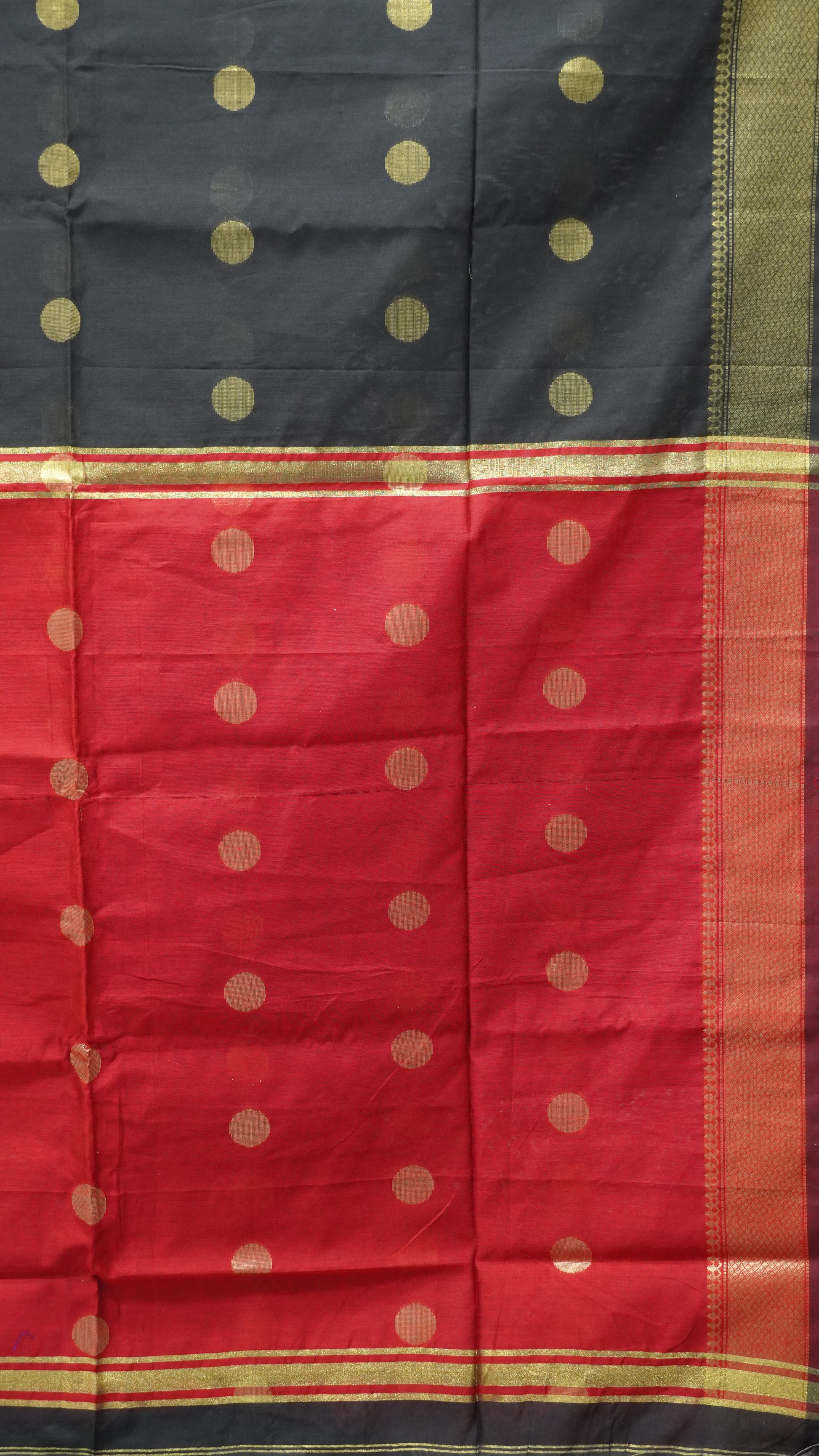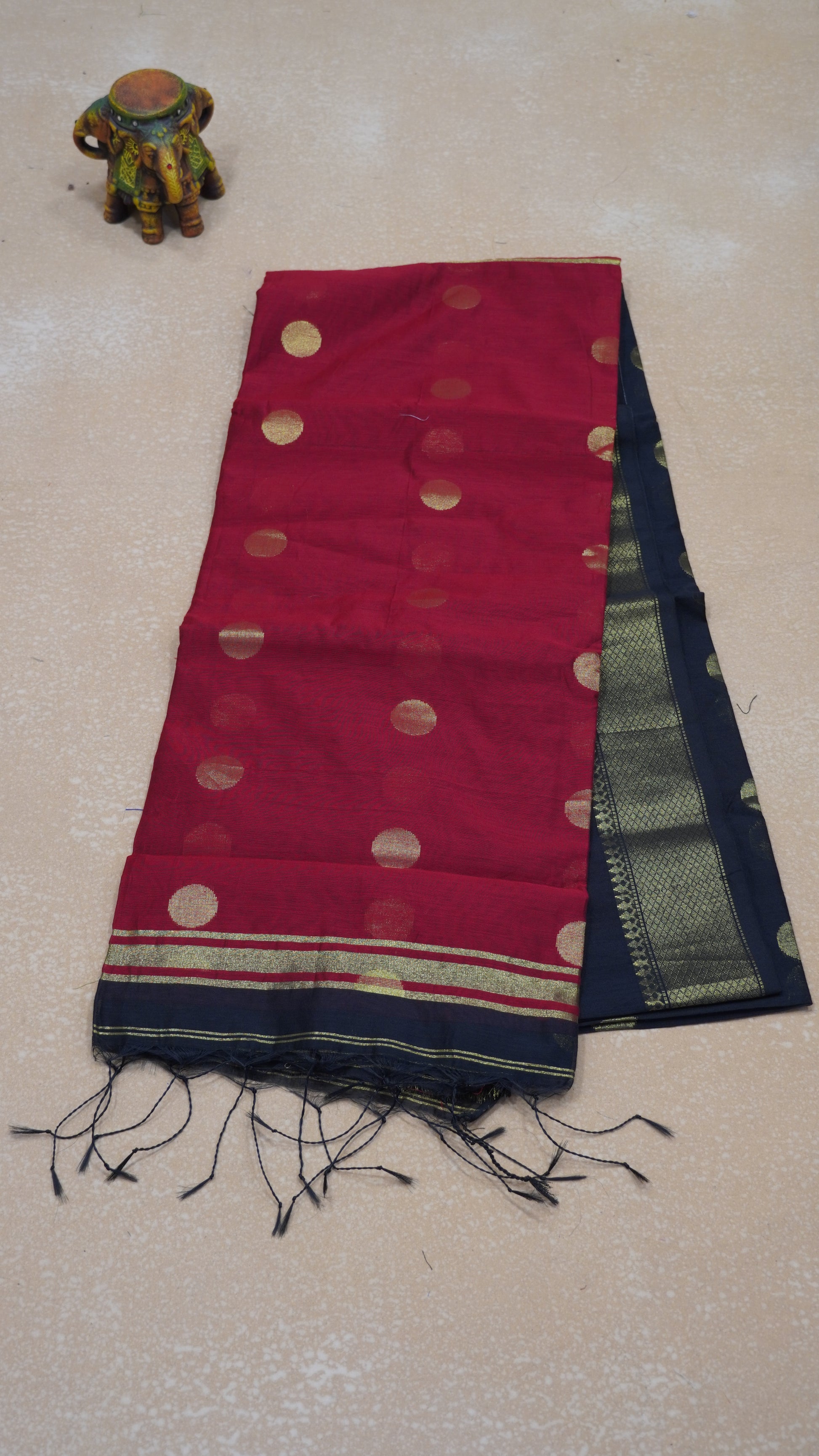 Maheswari Cotton Saree Round Butta-Black