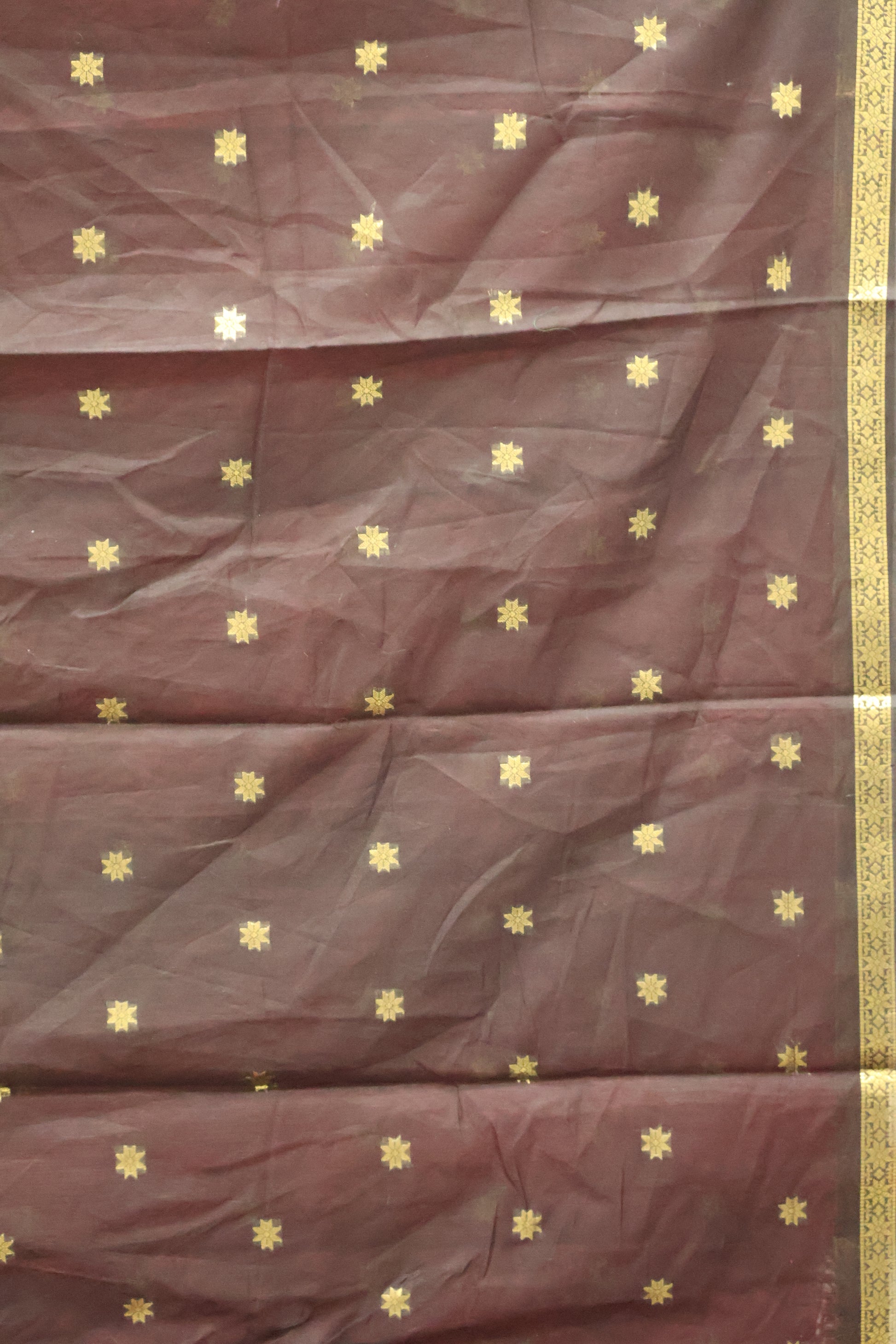 Maheswari Cotton Saree - Maroon Star Zari Buta