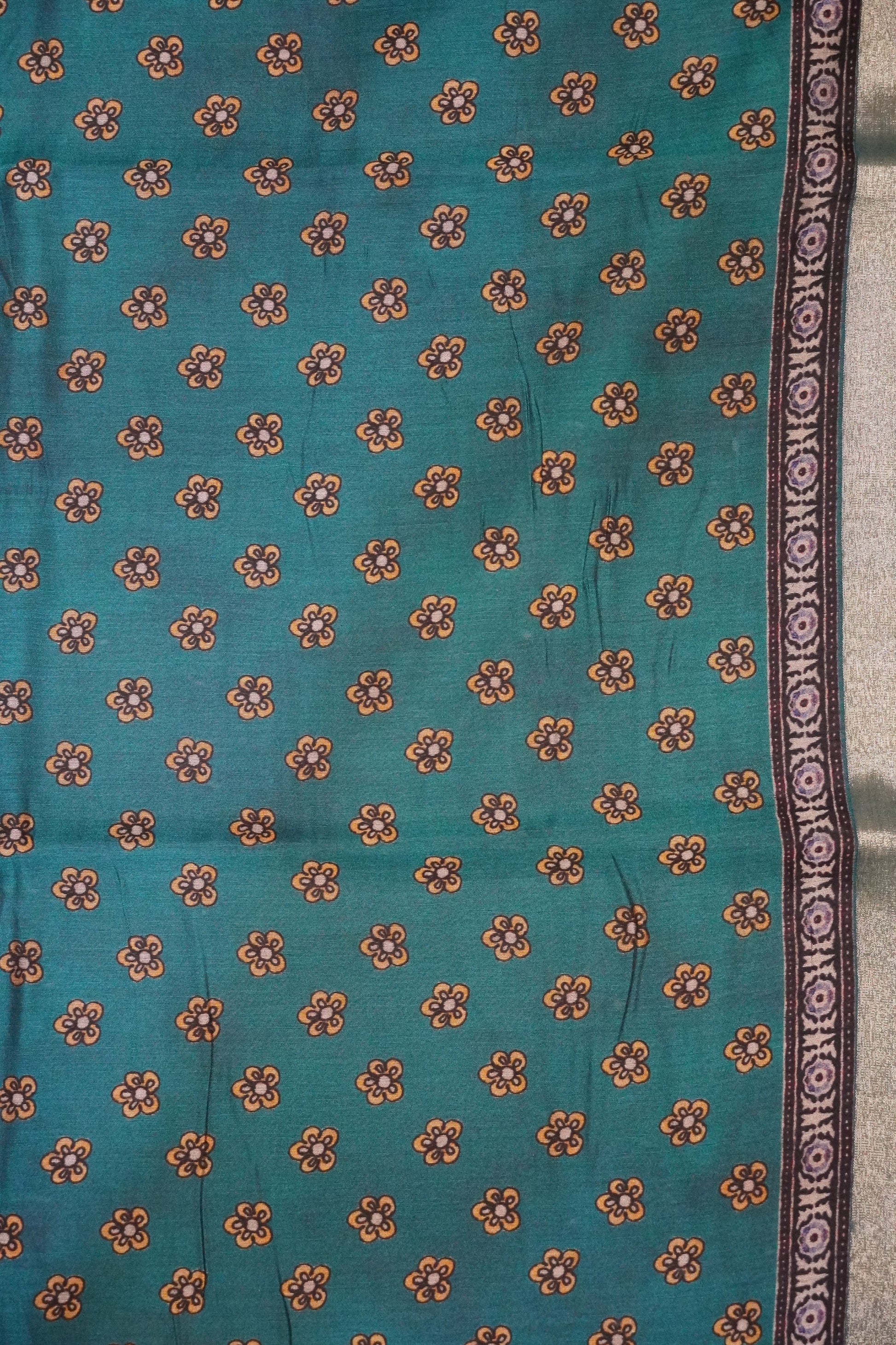 Mal Chanderi Saree - Peacock Green