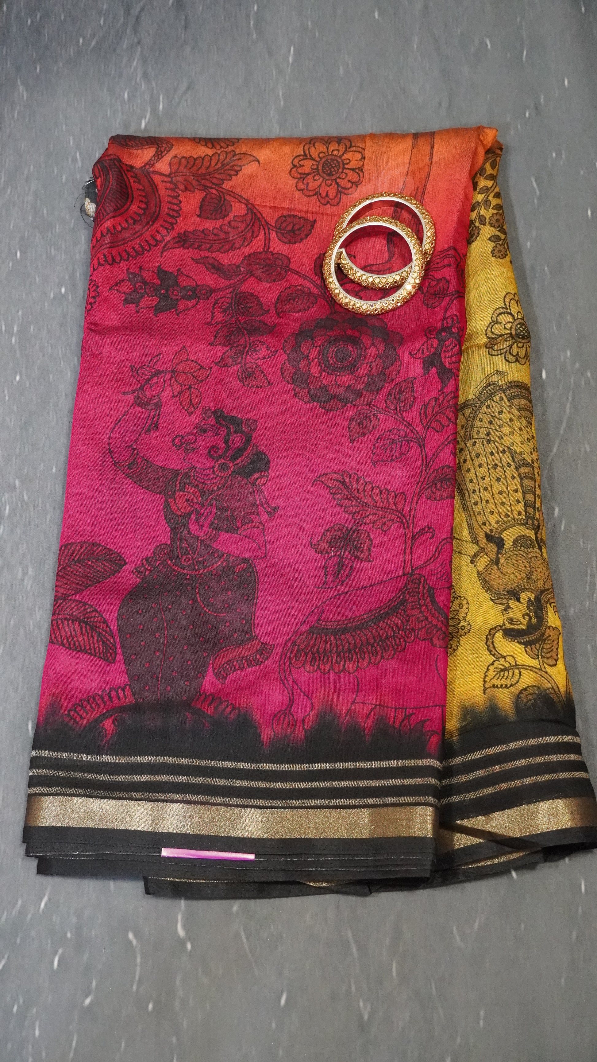 Malai Cotton Saree - Mustard-Magenta