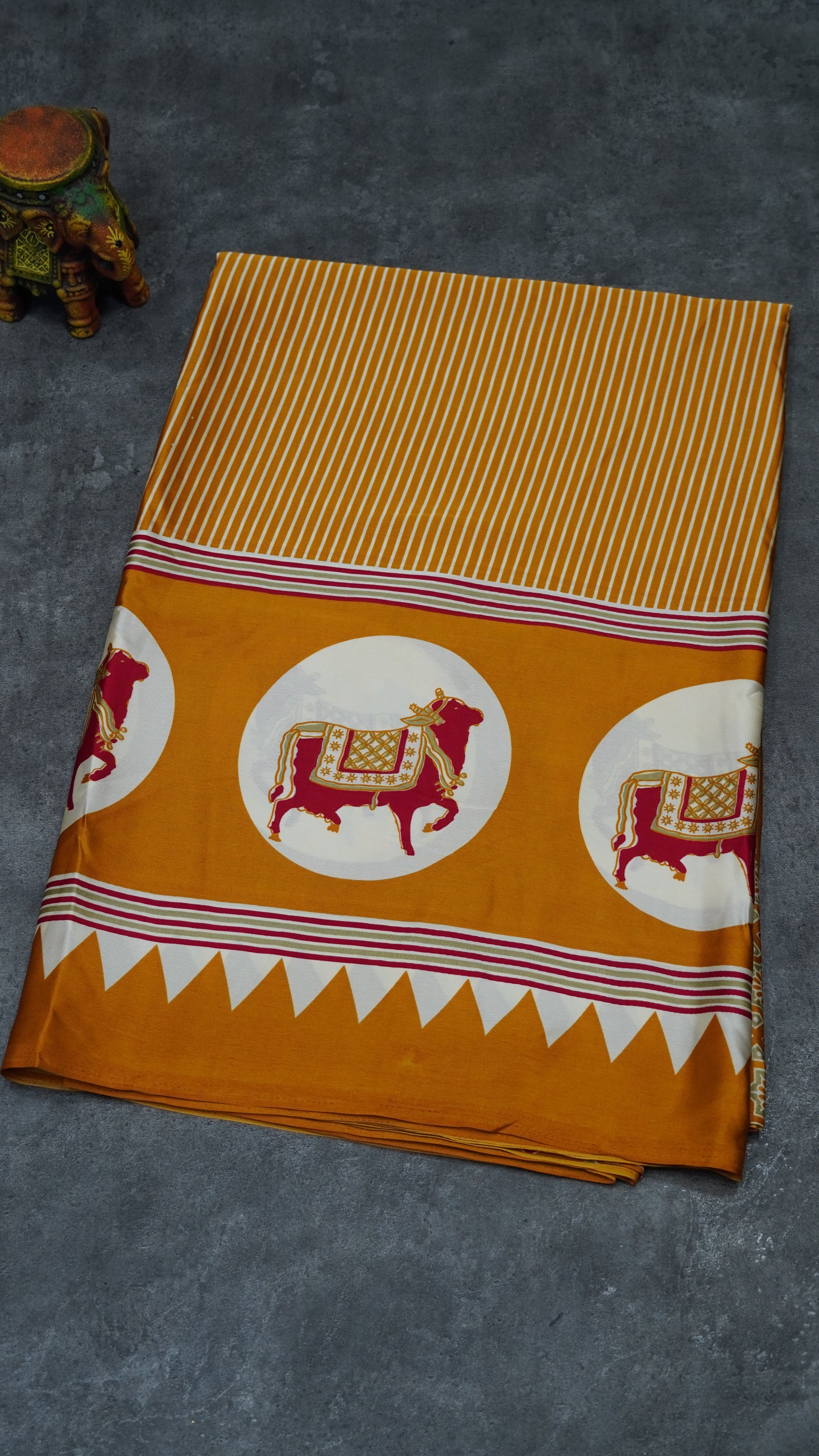 Modal Satin Saree with Ajrakh Blouse - Mustard
