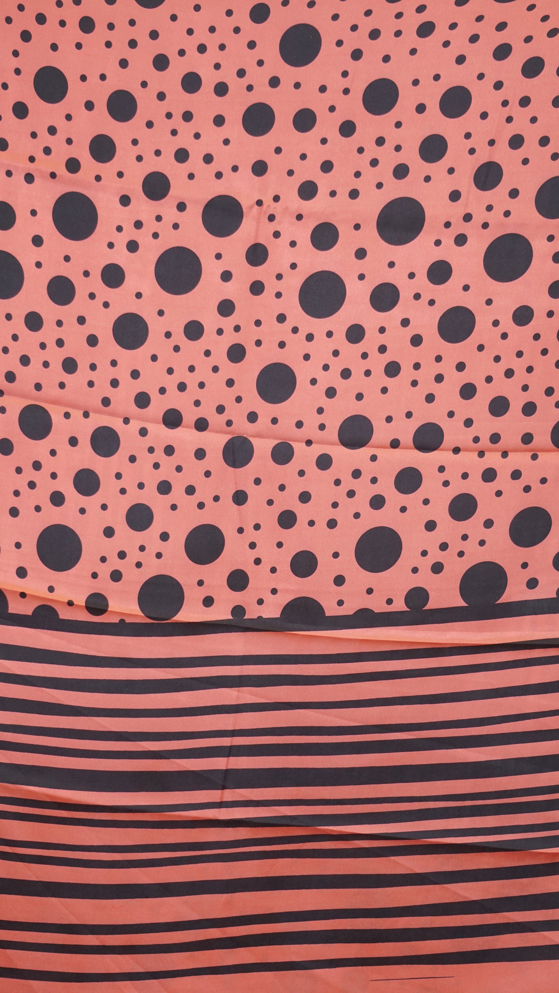 Modal Satin Saree - Peach With Black Polka Dots