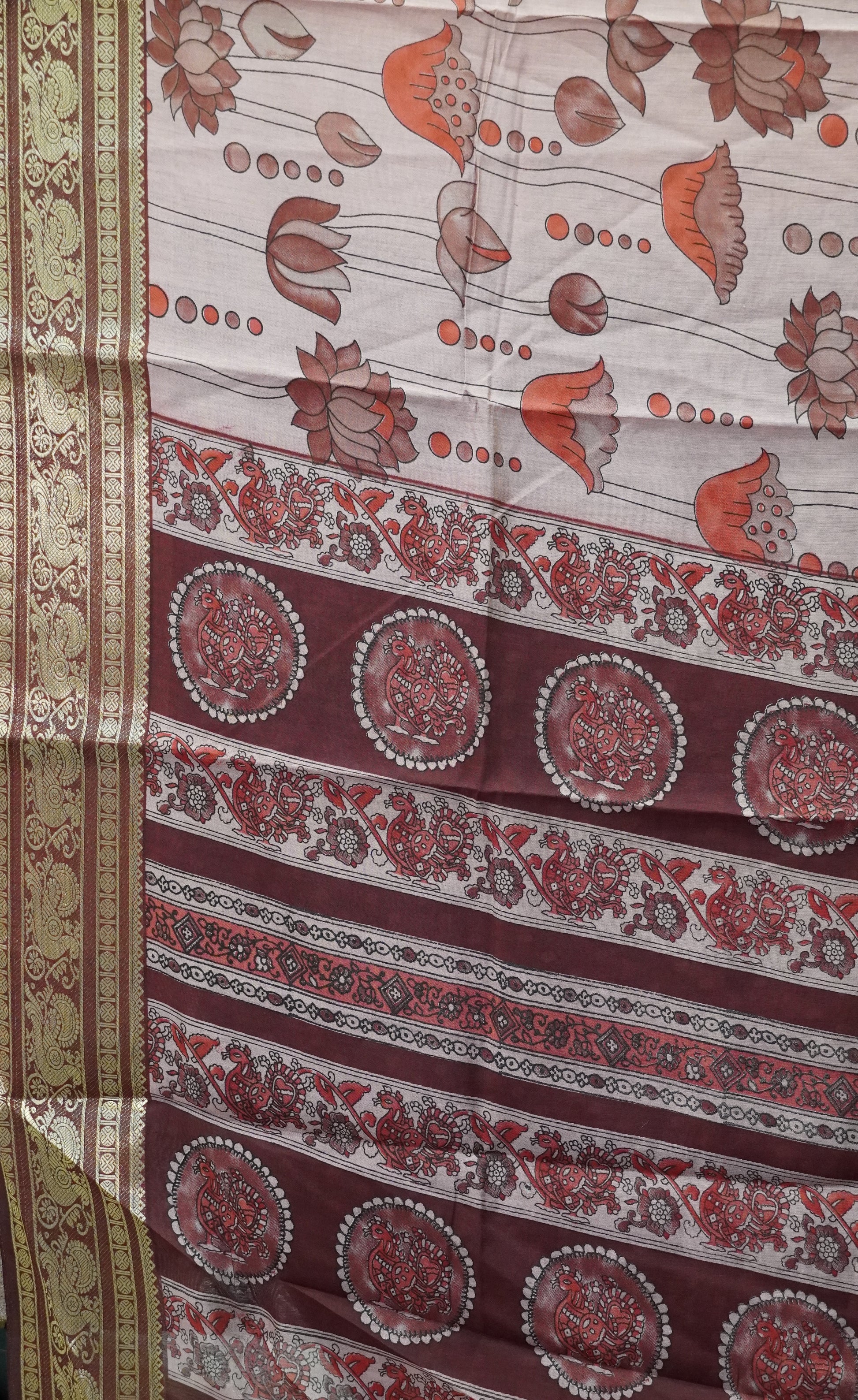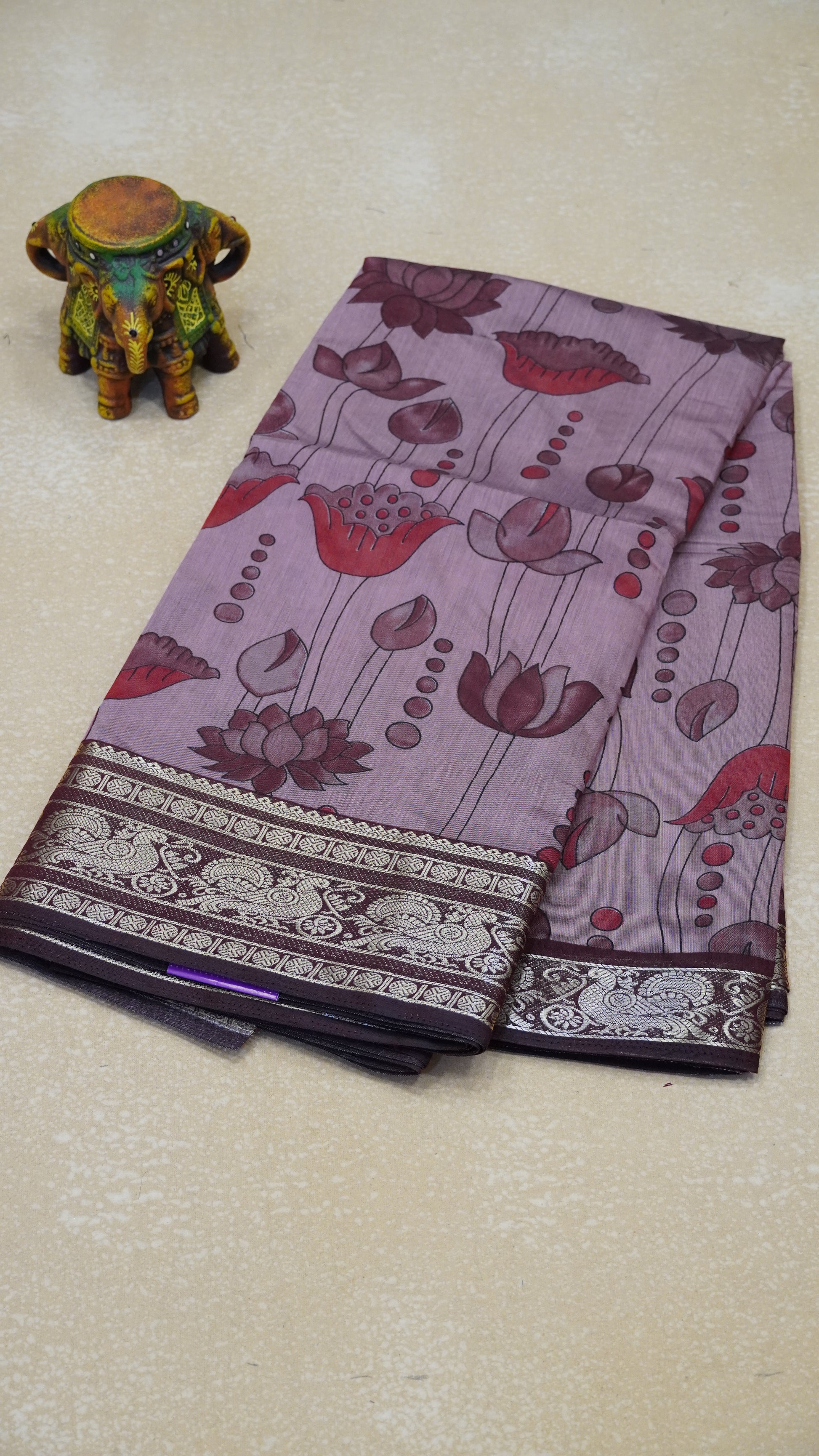 Malai Cotton Saree Mangalgiri Border - Onion Pink