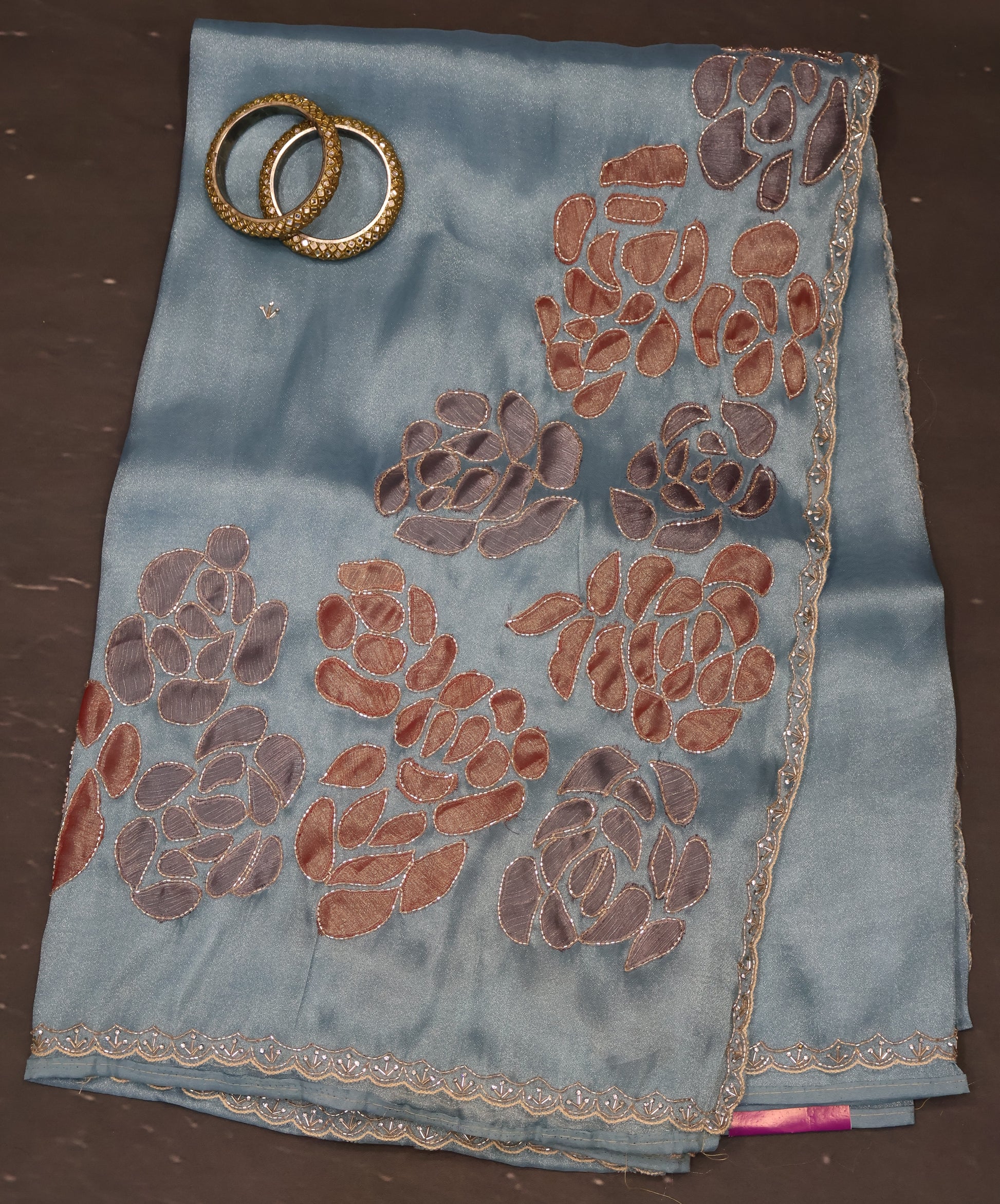 Organza Designer Saree-Blue Beads Kutch Work