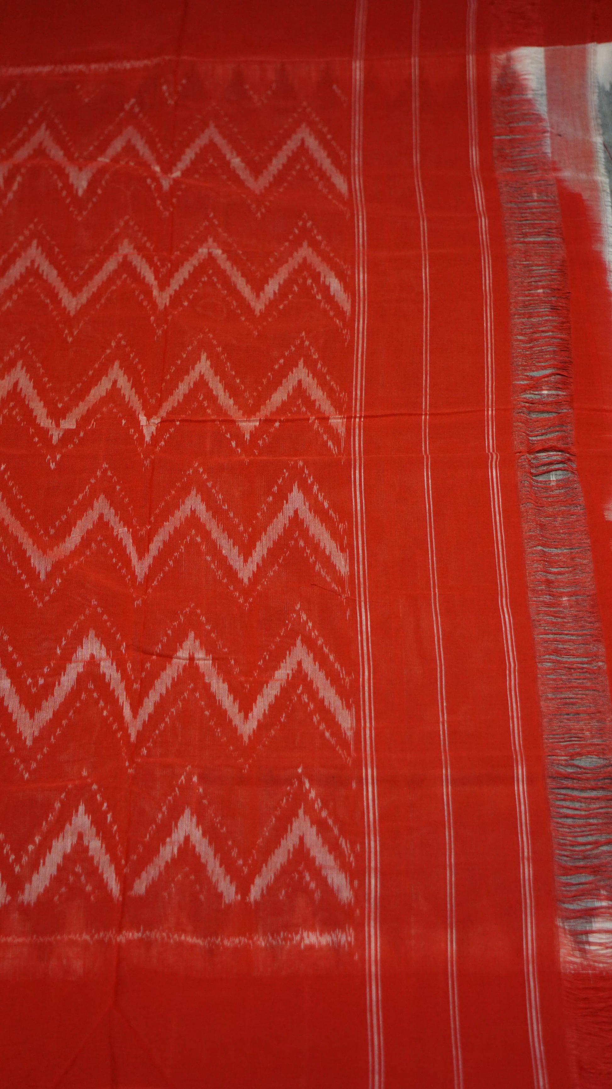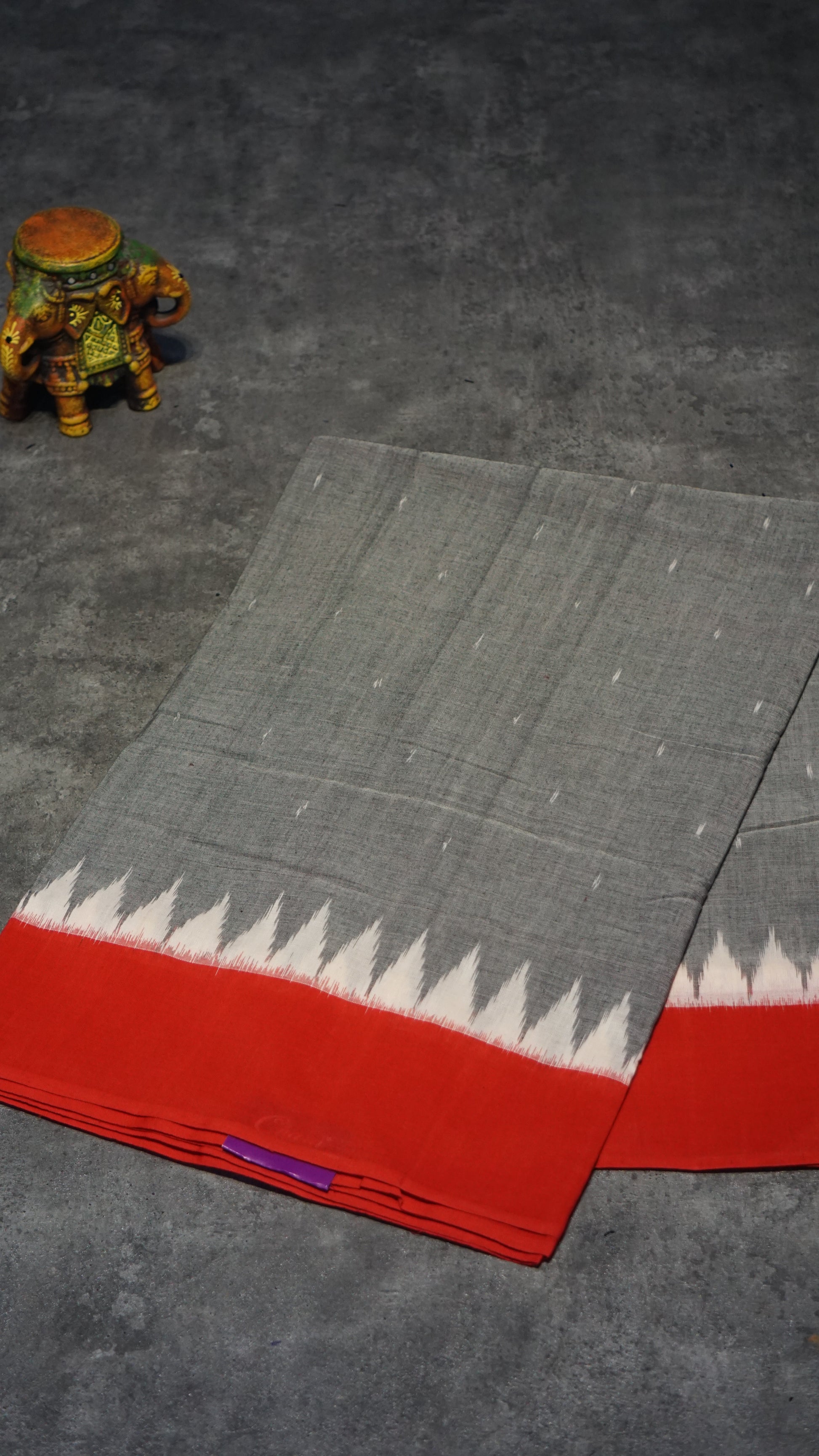 Pochampally Cotton double Ikkat Saree Grey - Red