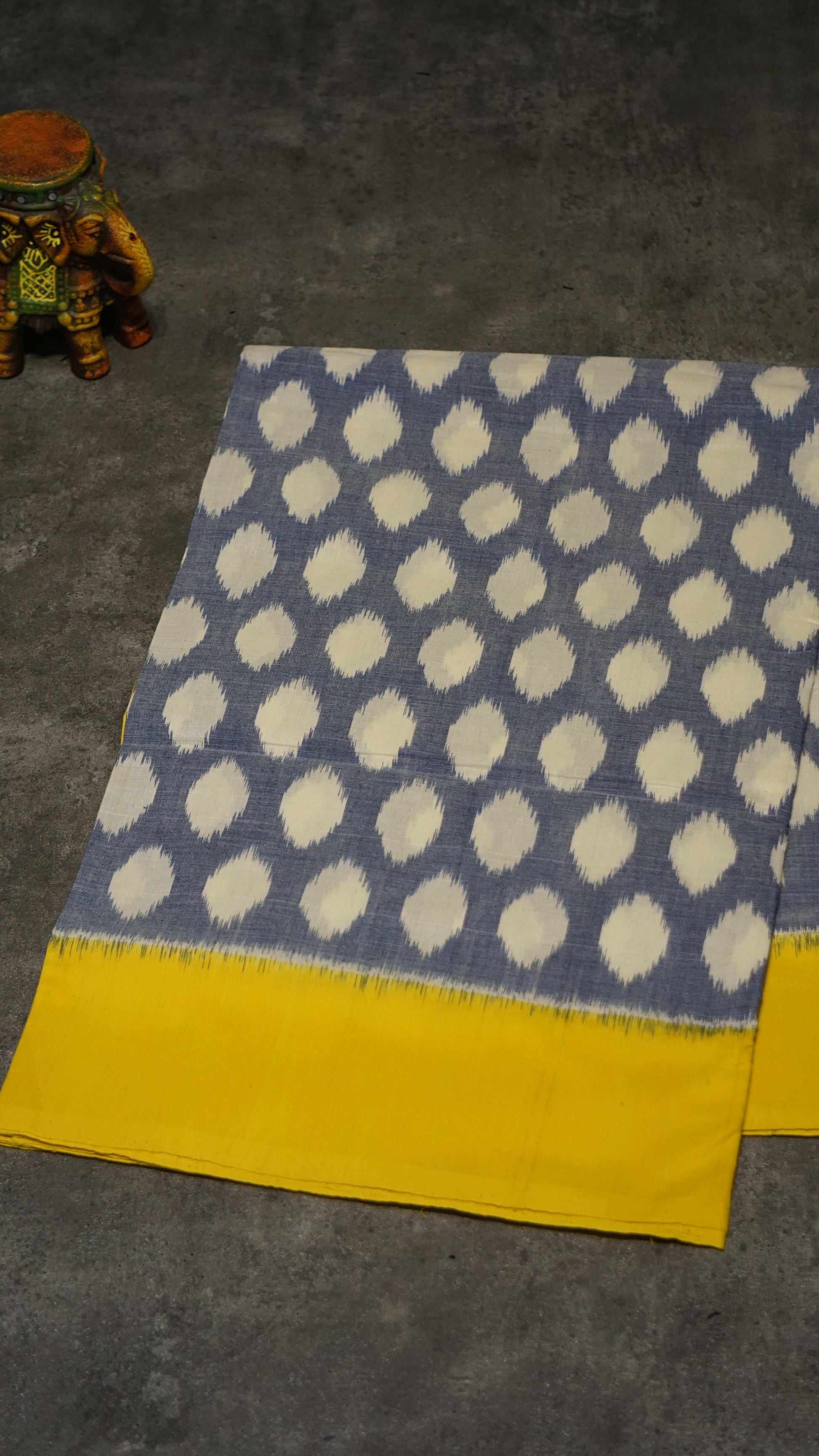 Pochampally Cotton double Ikkat Saree Light Blue - Yellow