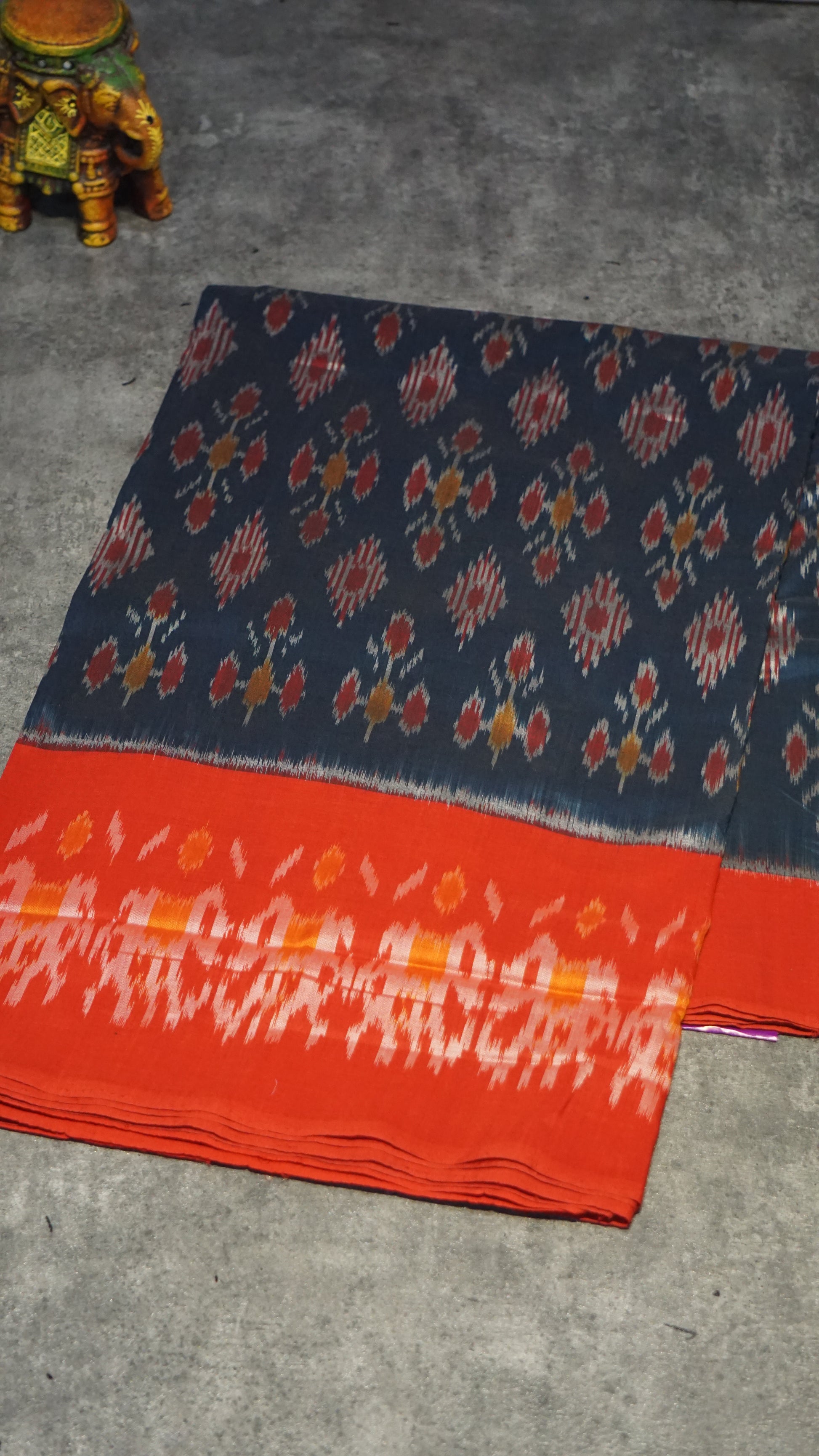 Pochampally Cotton double Ikkat Saree Navy Blue - Red