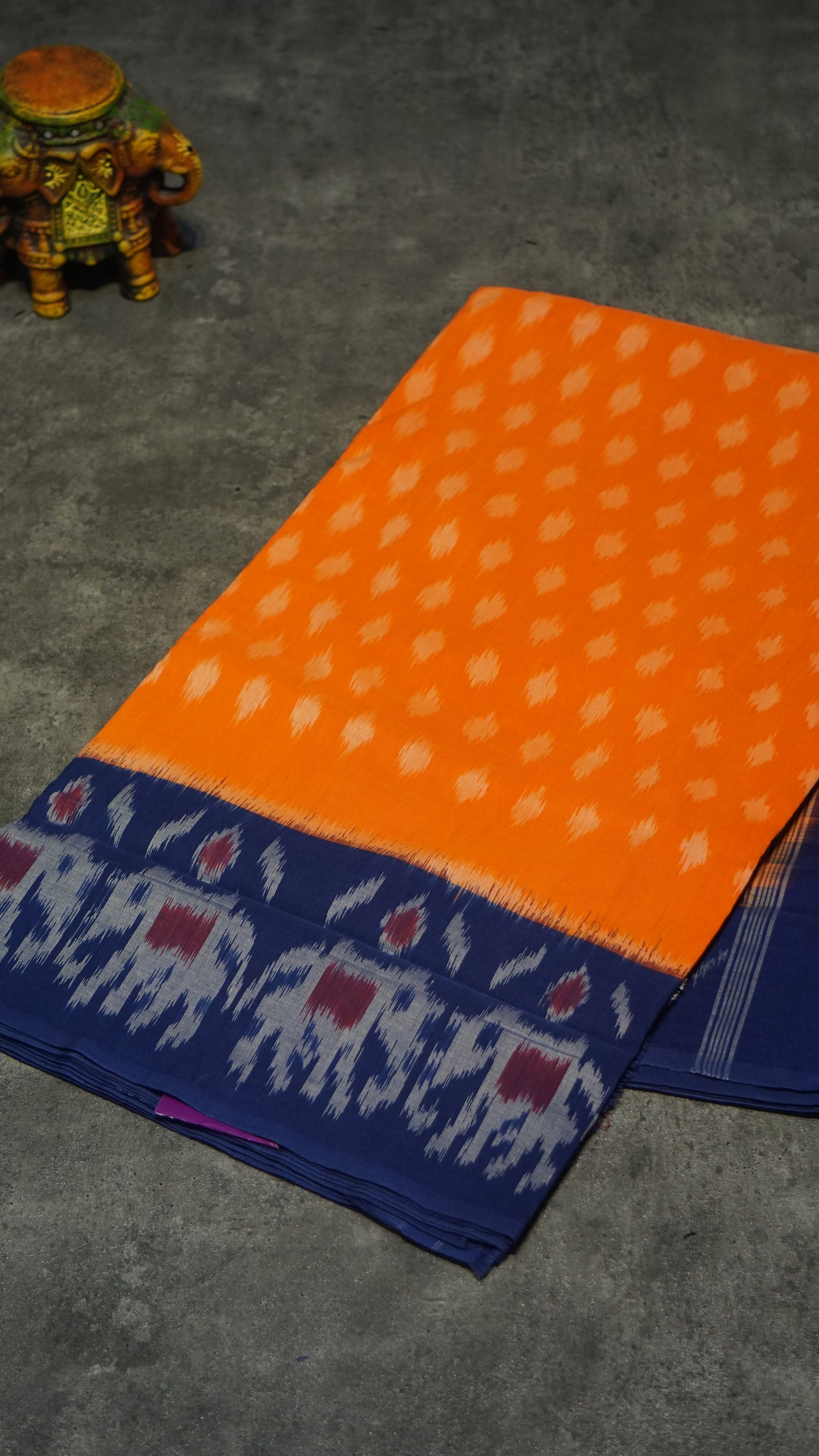Pochampally Cotton double Ikkat Saree Orange - Blue
