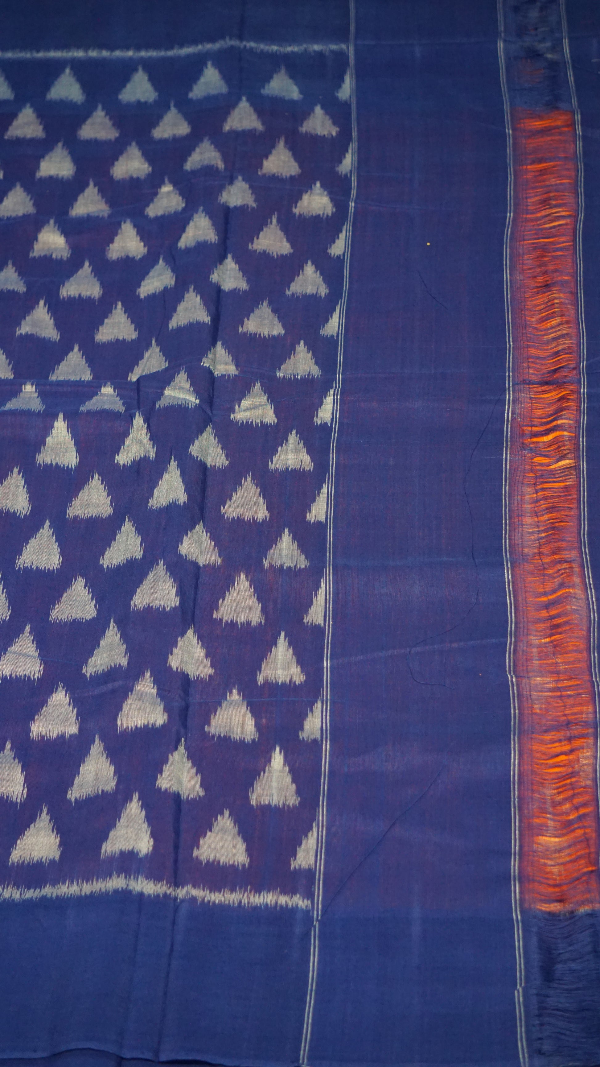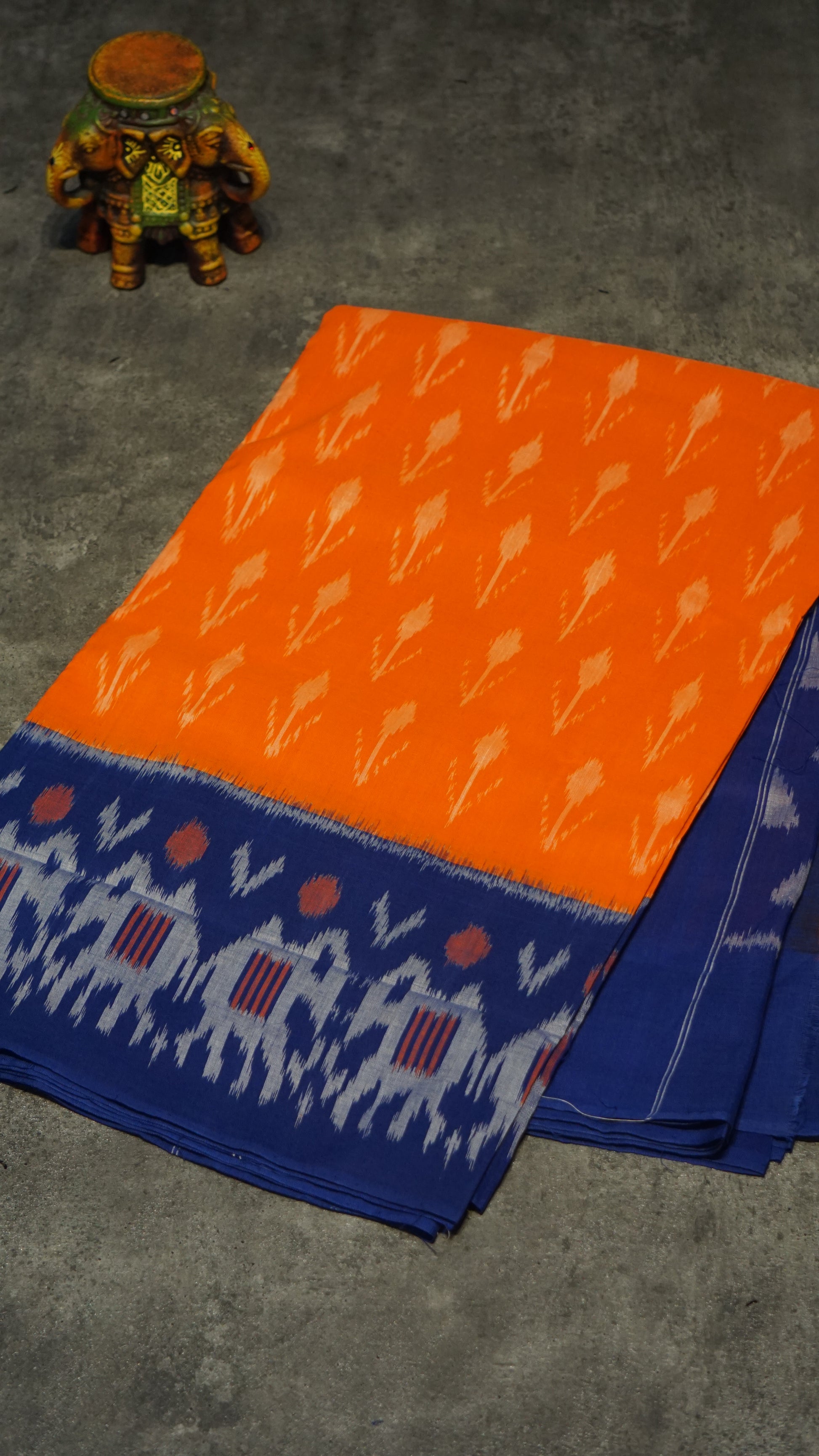 Pochampally Cotton double Ikkat Saree Orange - Blue