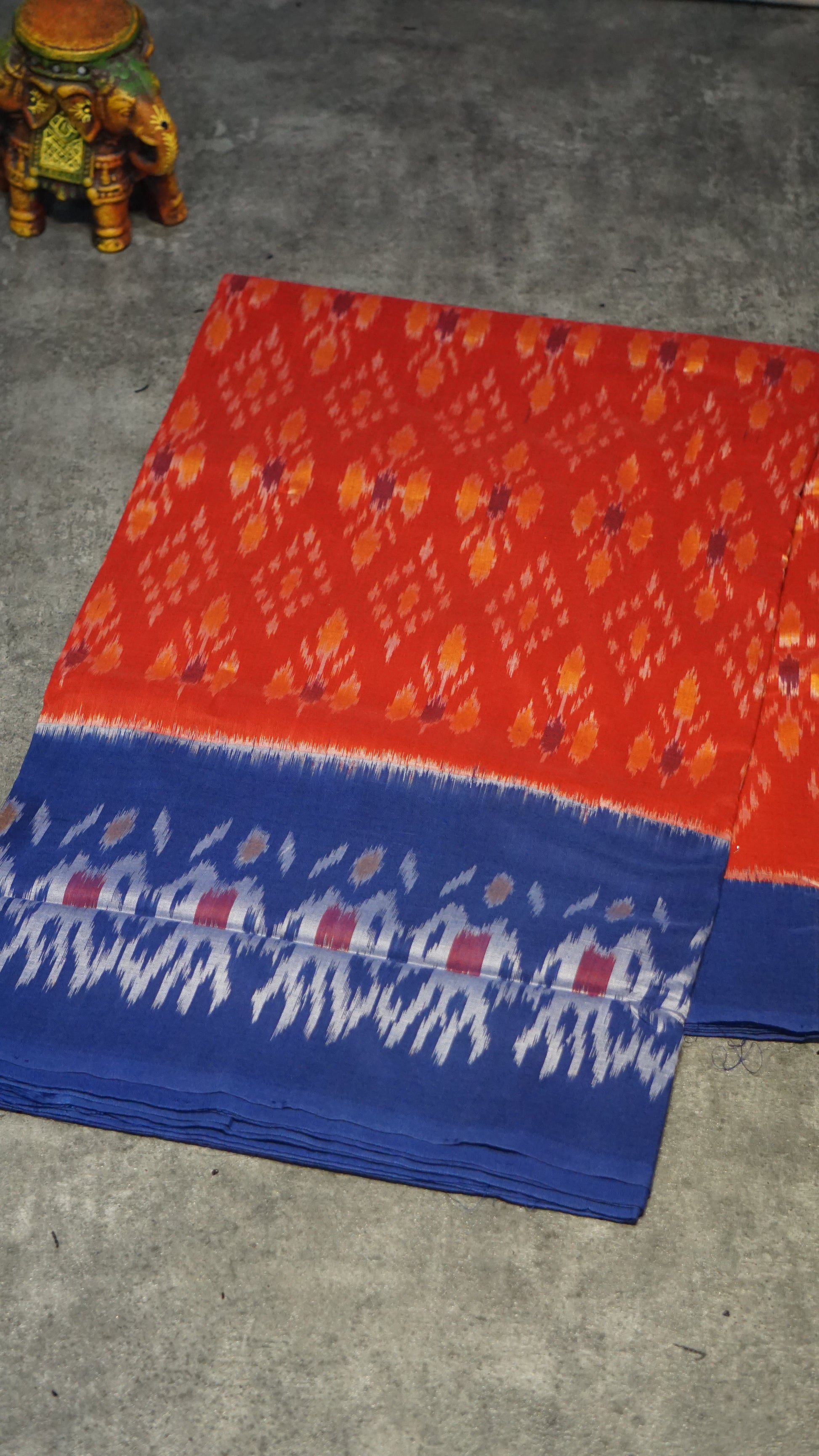 Pochampally Cotton double Ikkat Saree Red - Blue