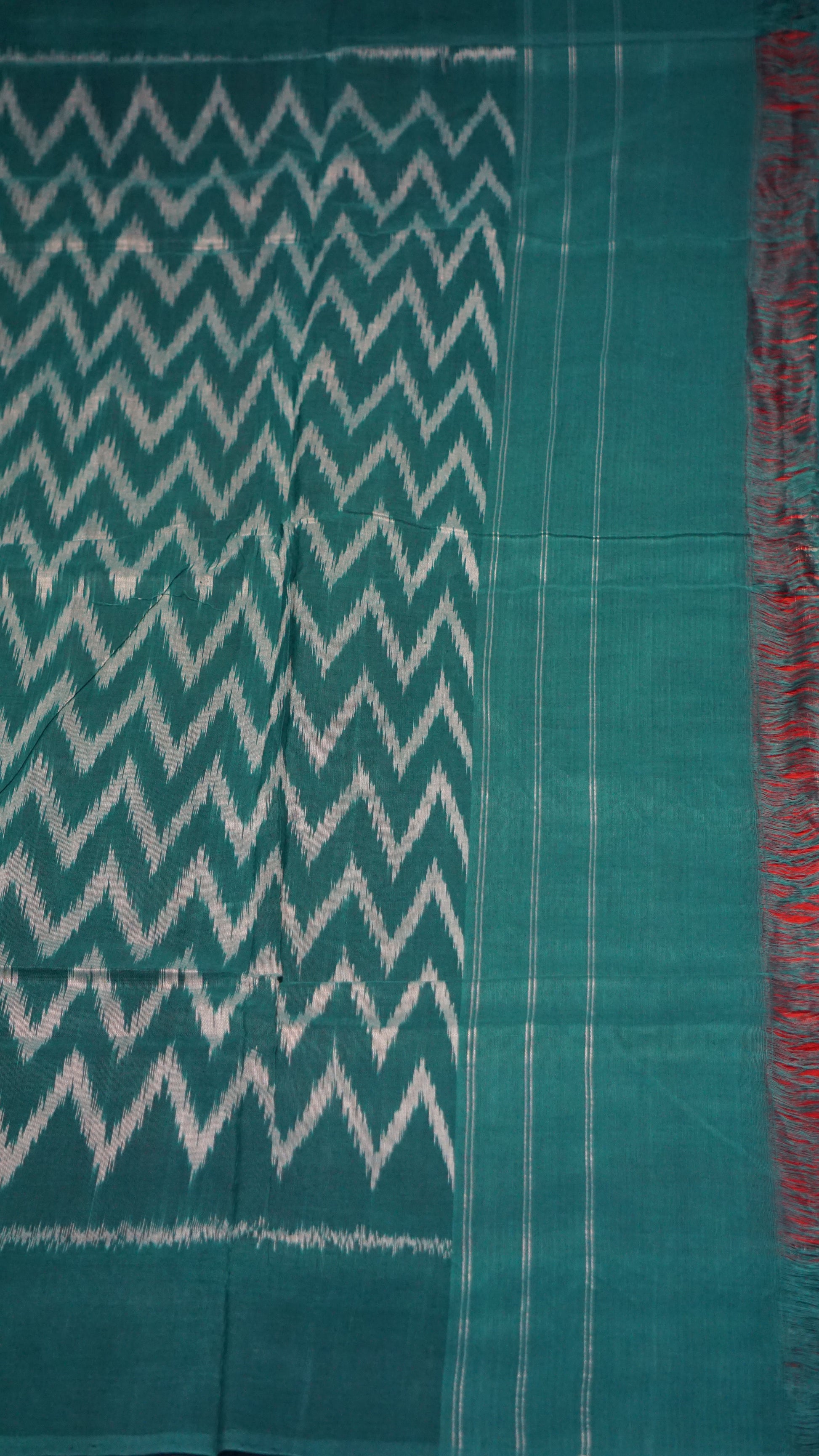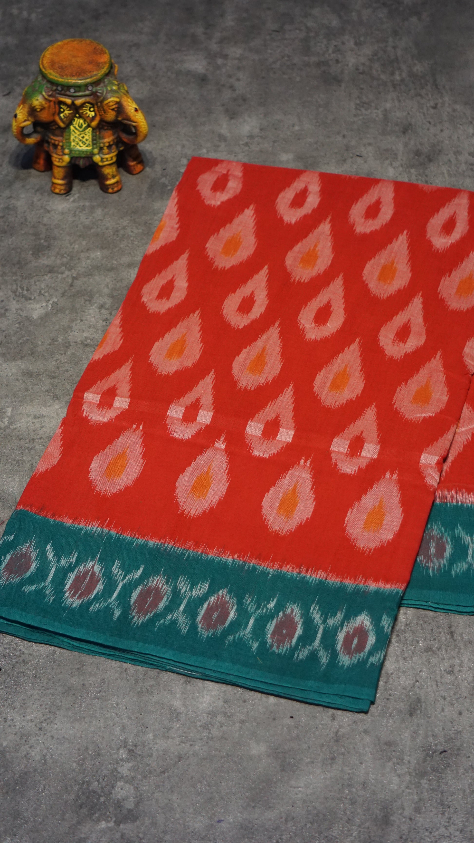Pochampally Cotton double Ikkat Saree Red - Teal Green