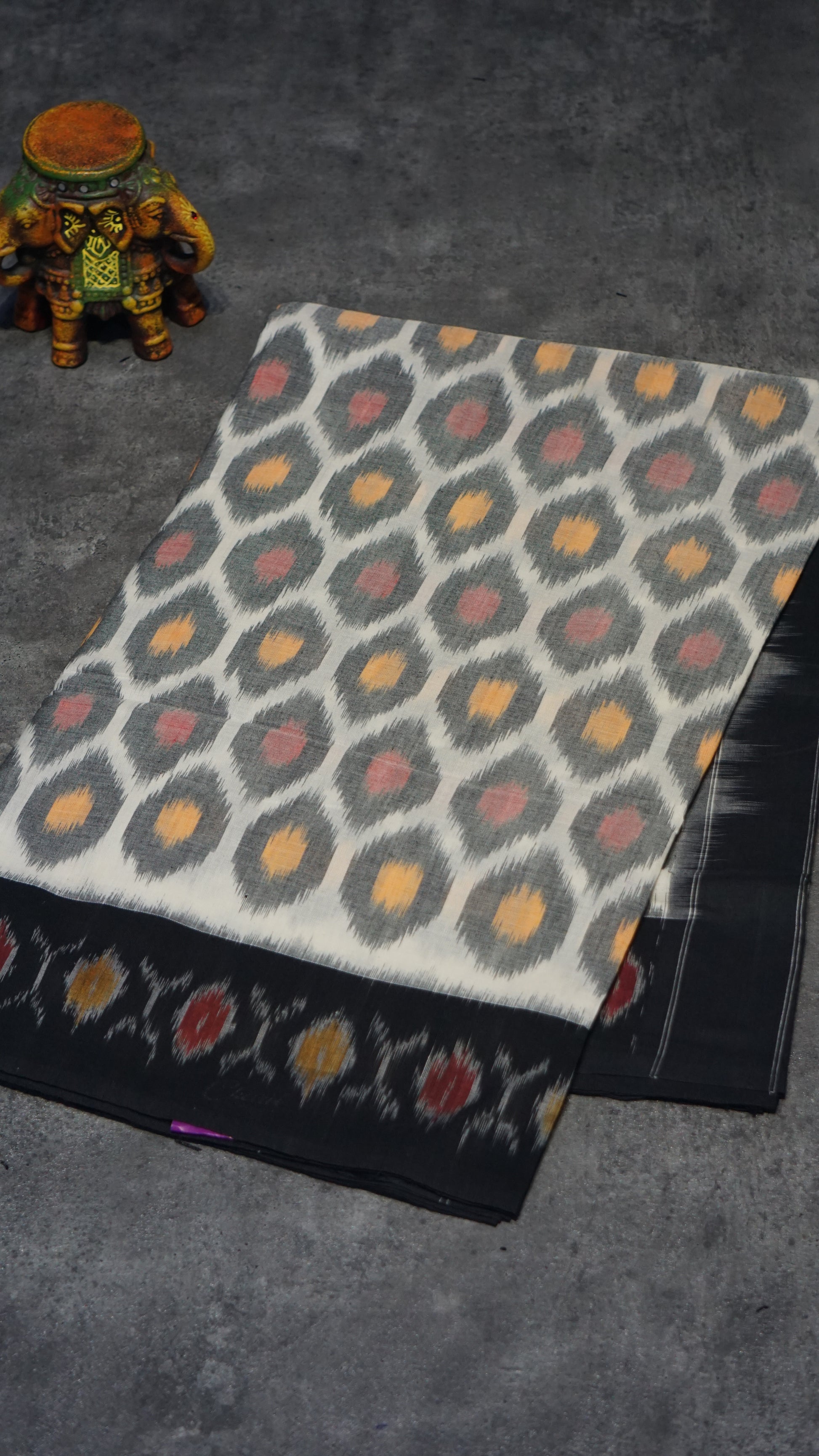 Pochampally Cotton double Ikkat Saree White - Grey