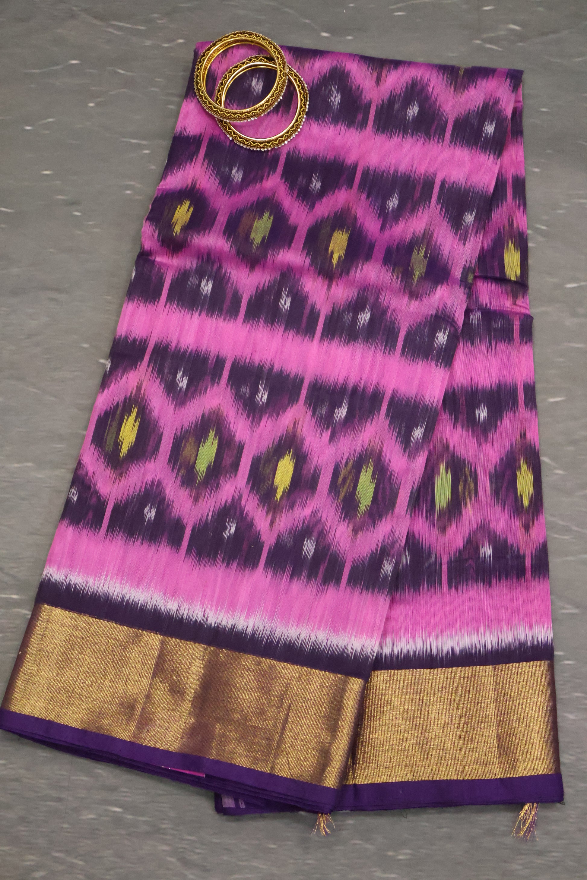 Pochampally Silk Cotton-Light Purple ikkat Pattern