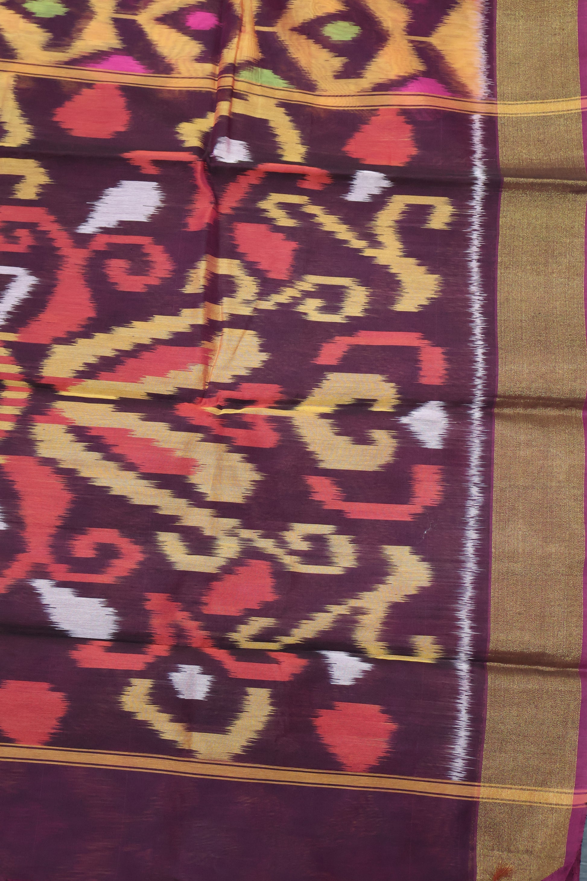 Pochampally Silk Cotton- Peach ikkat Pattern
