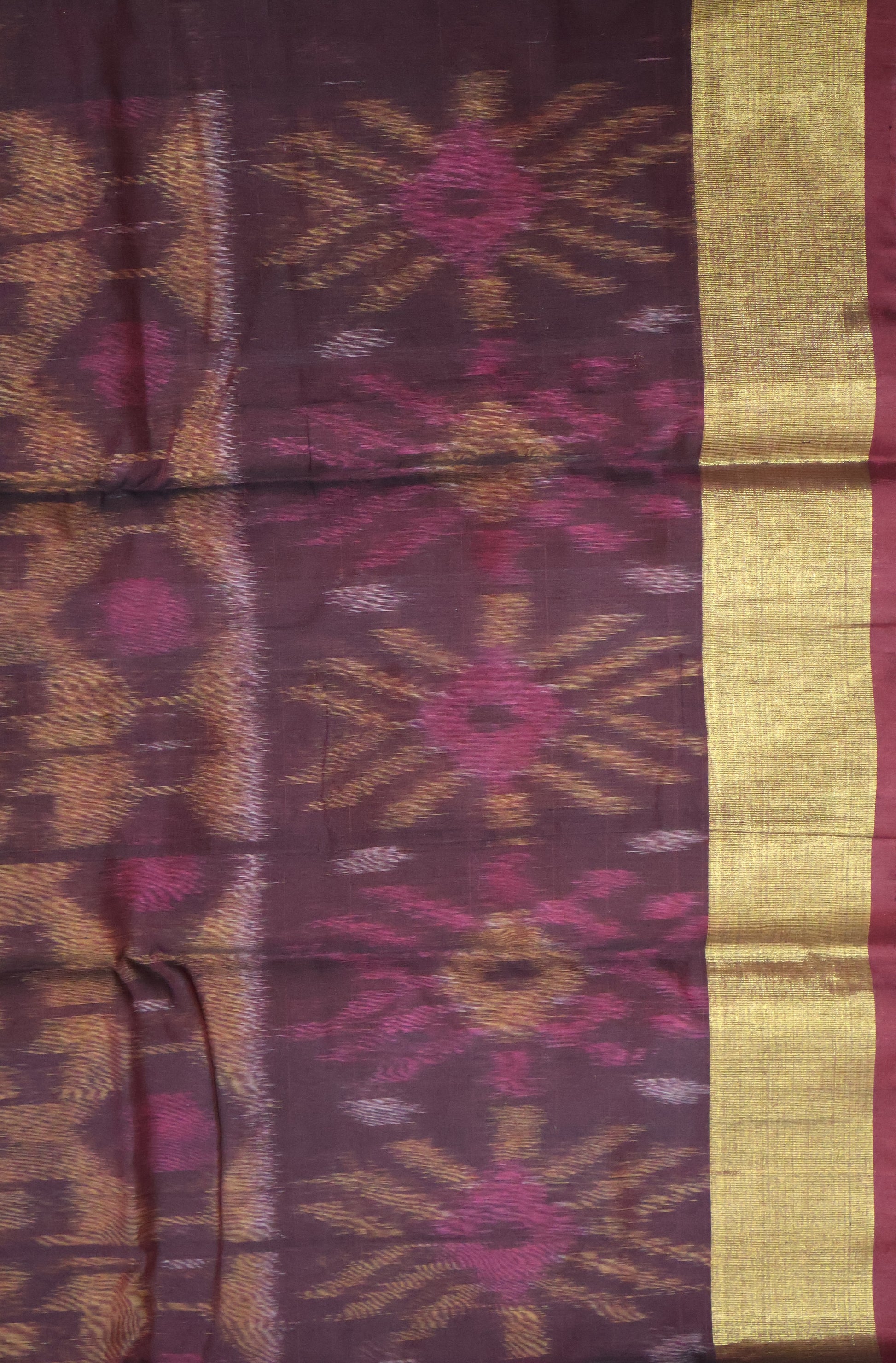 Pochampally Silk Cotton- Orange ikkat Pattern