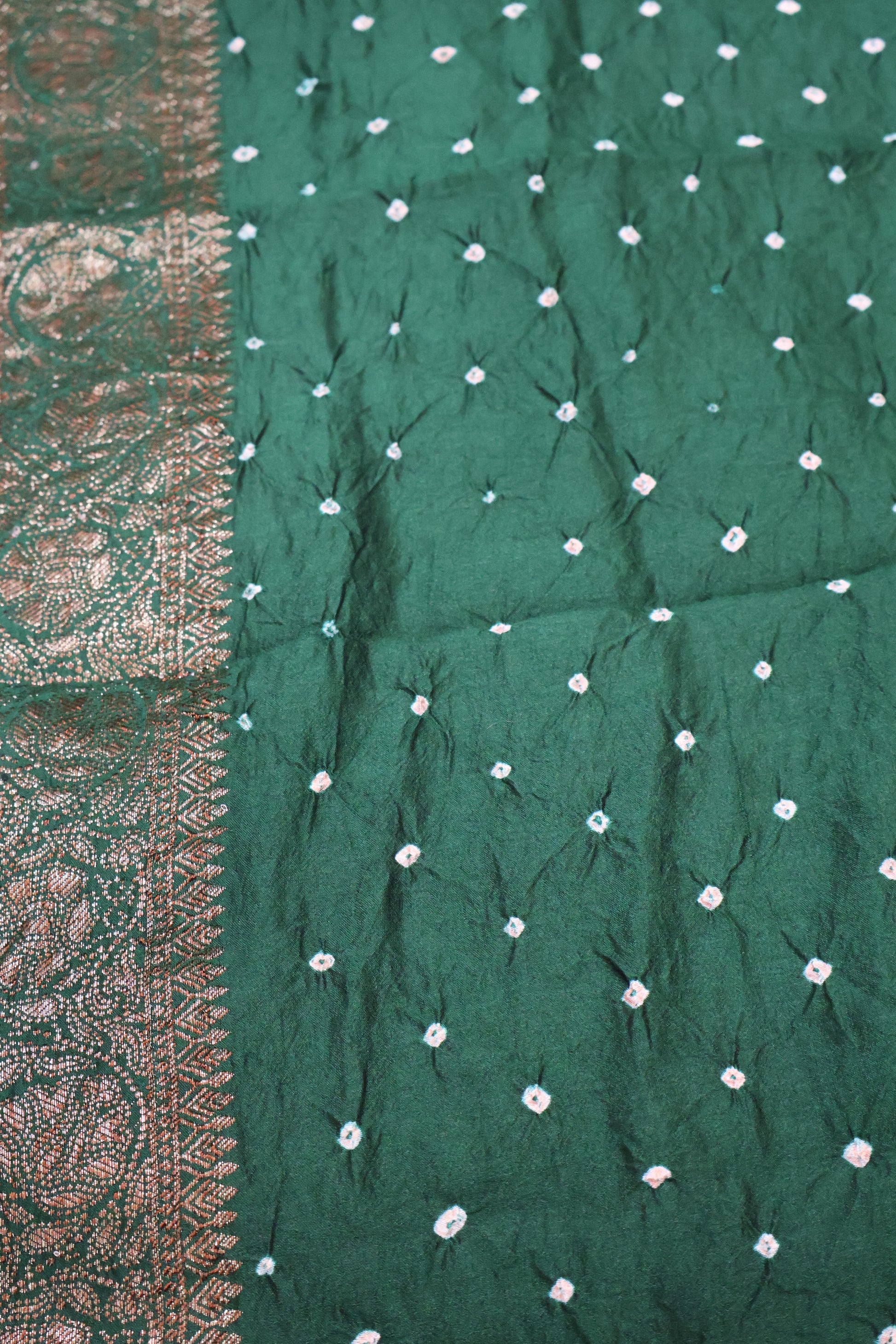 Pure Banarasi Saree Crushed -Dark Green Oval Pattern