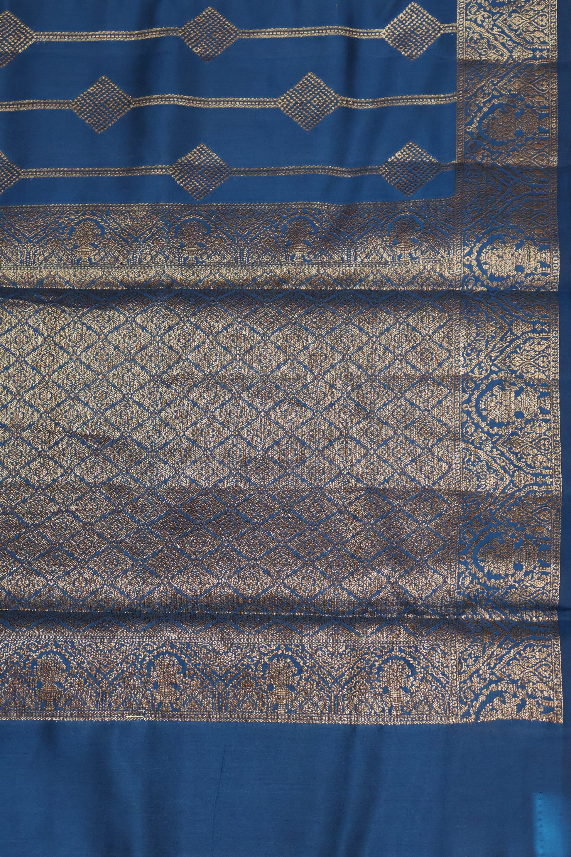 Pure Banarasi Saree Chiniya Silk - Peacock Blue Diamond Motif