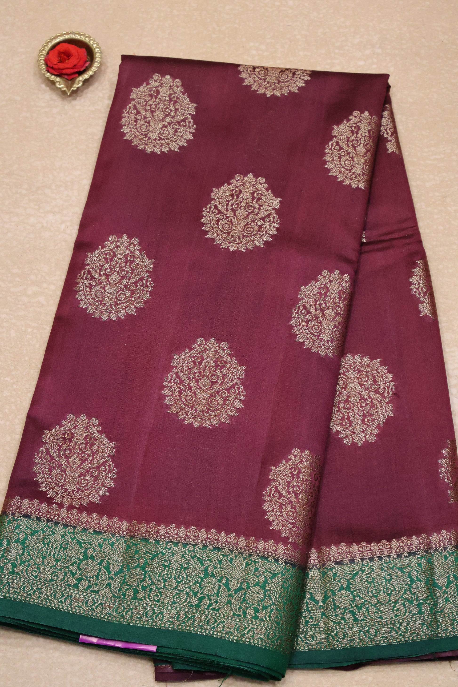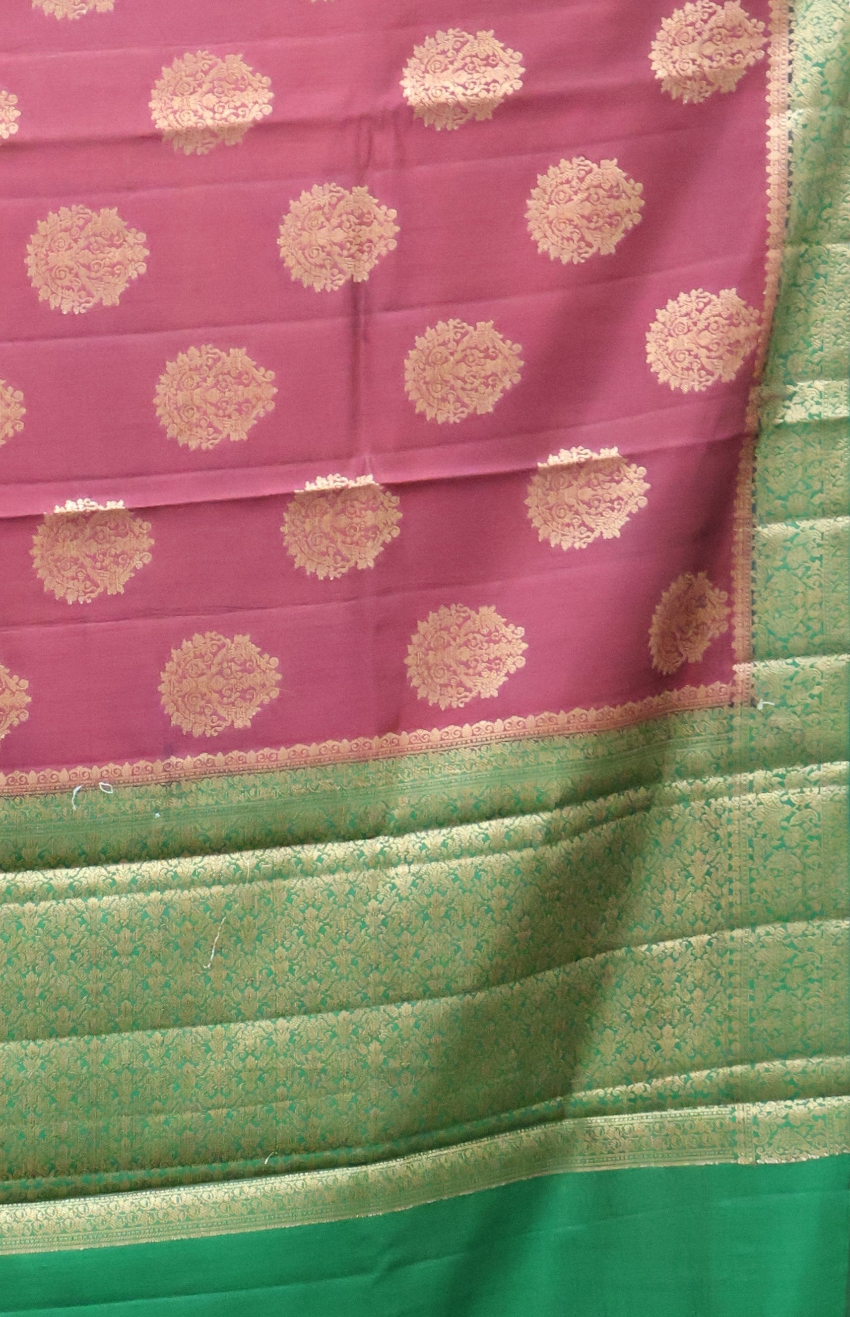 Pure Banarasi Saree Chiniya Silk with Contrast Pallu-Maroon