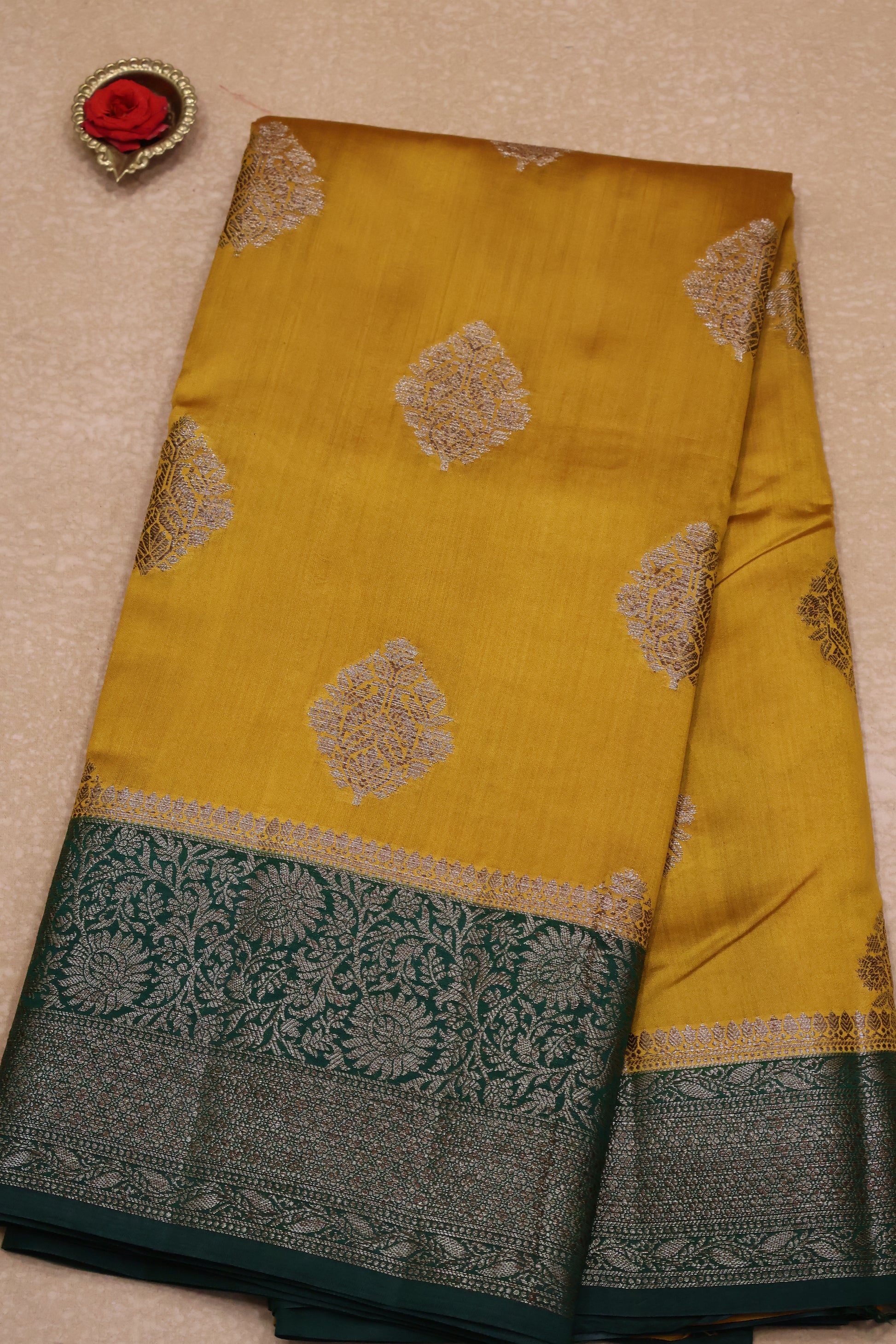 Pure Banarasi Saree Chiniya Silk with Contrast Pallu-Mustard