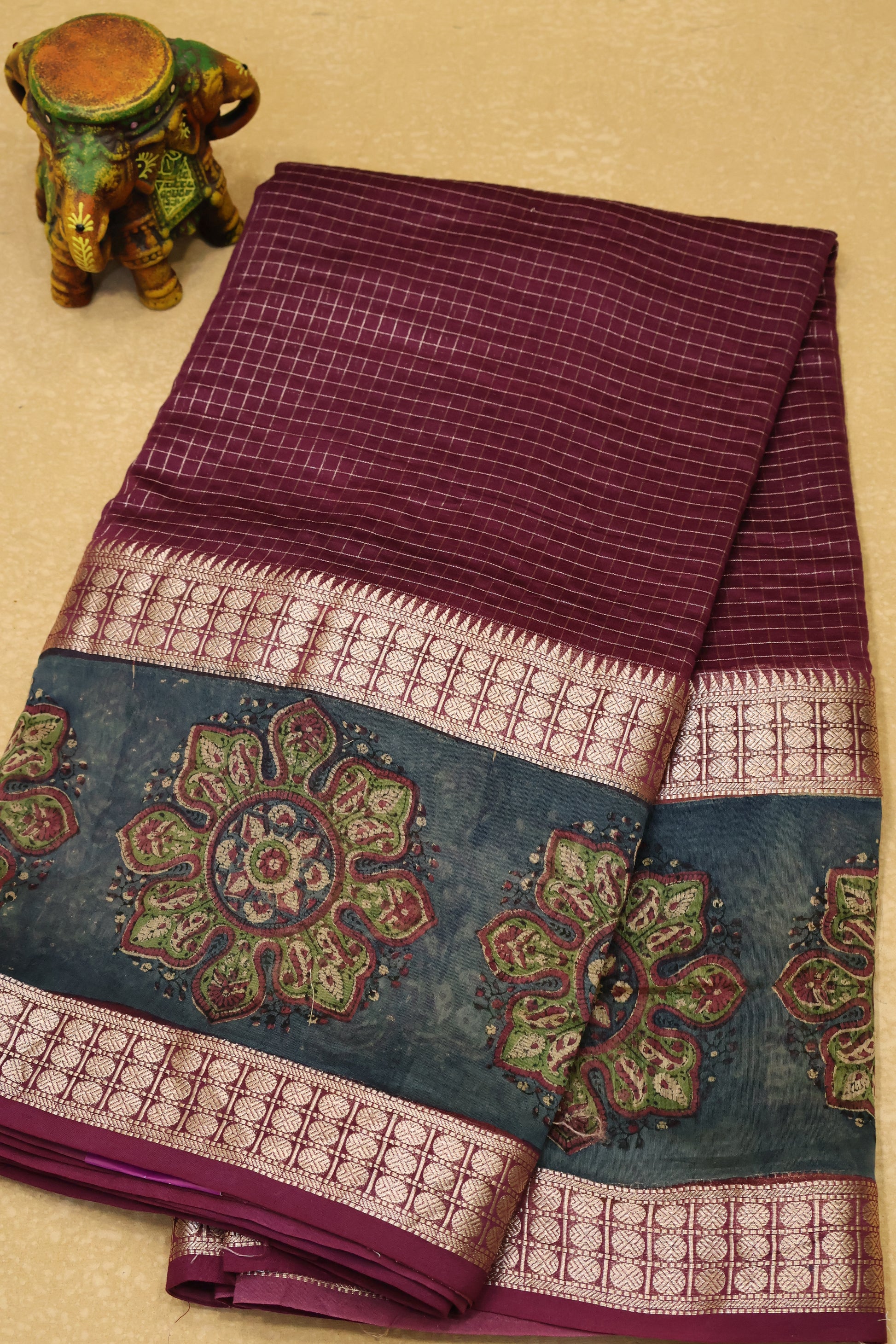 Pure Chanderi -Wine Kolam