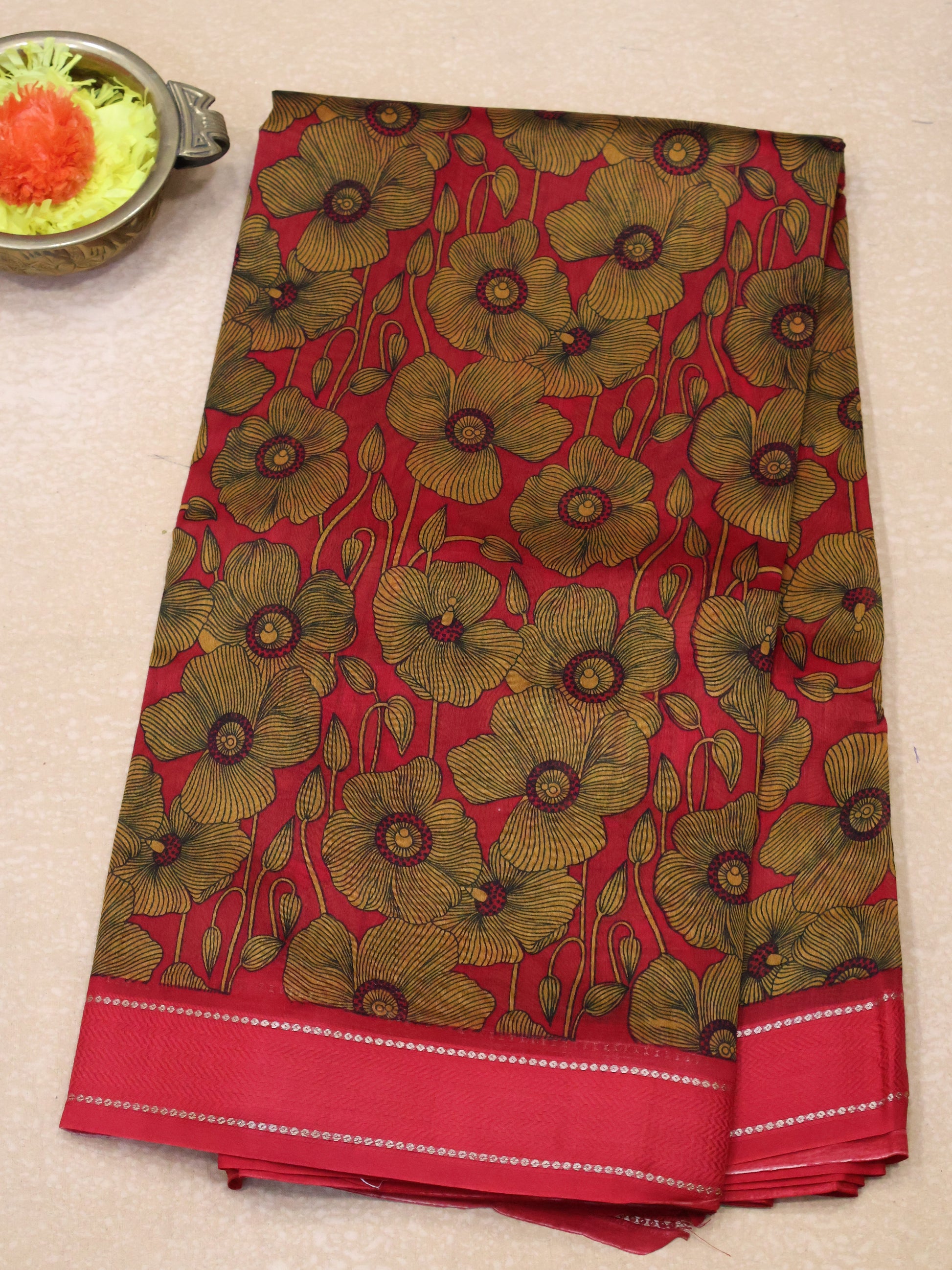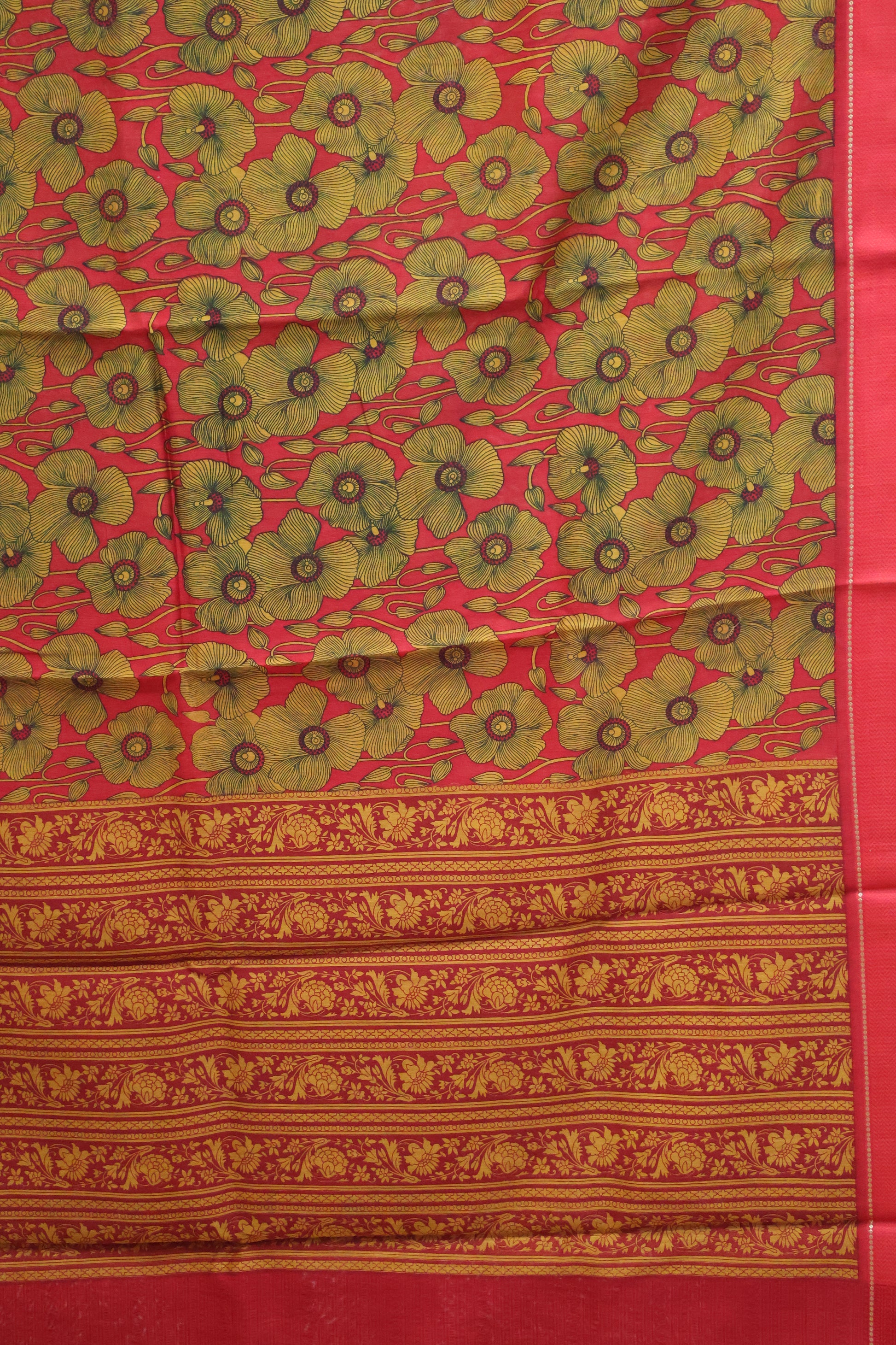 Pure Chanderi Saree -Red Floral Double Border