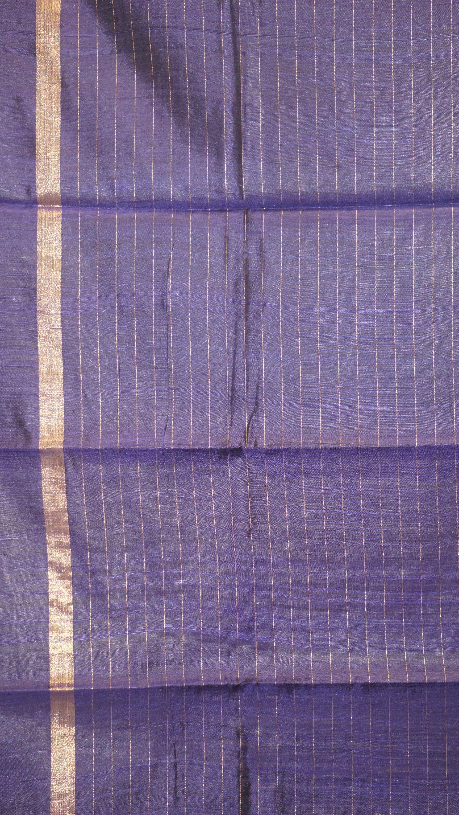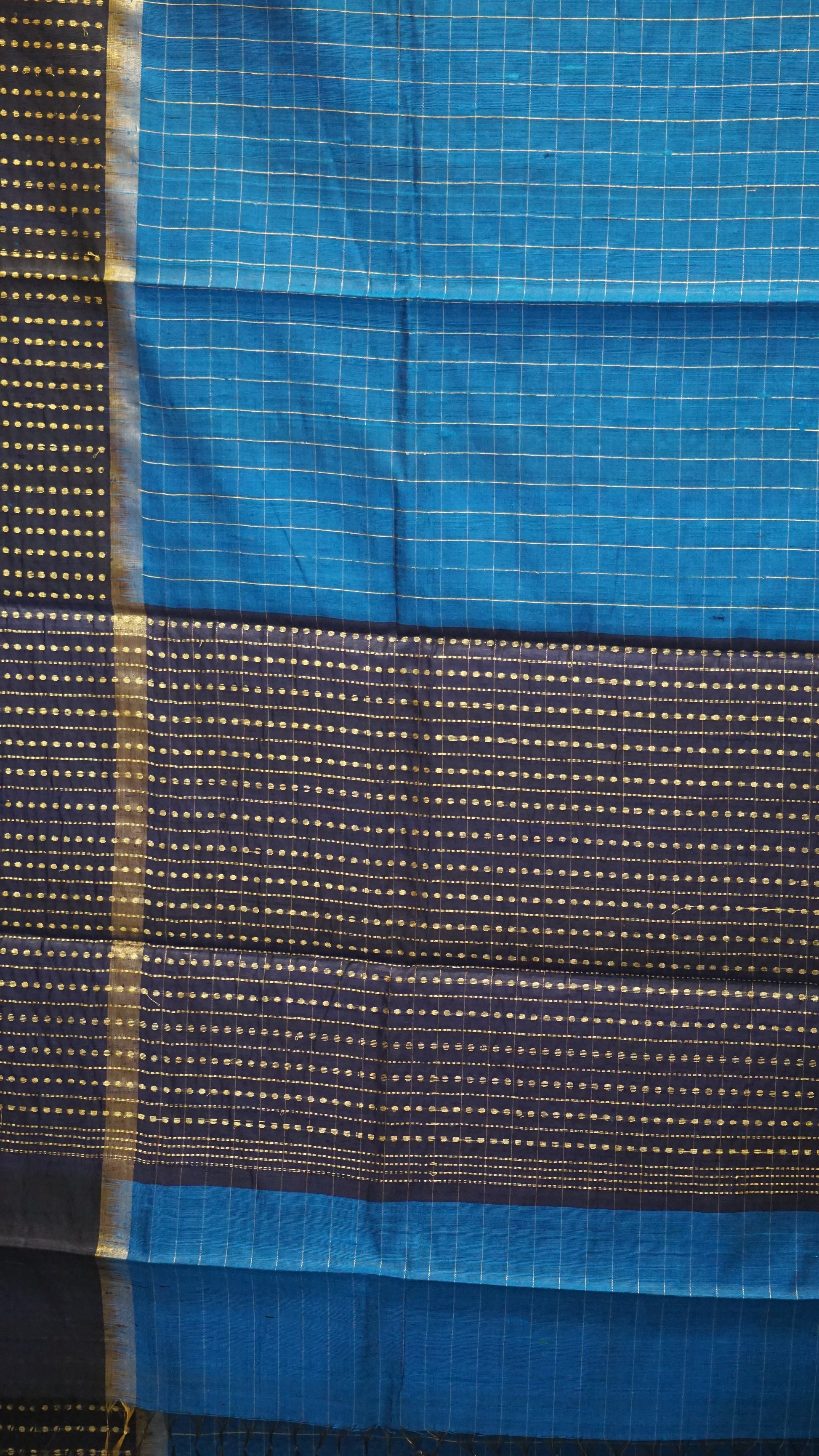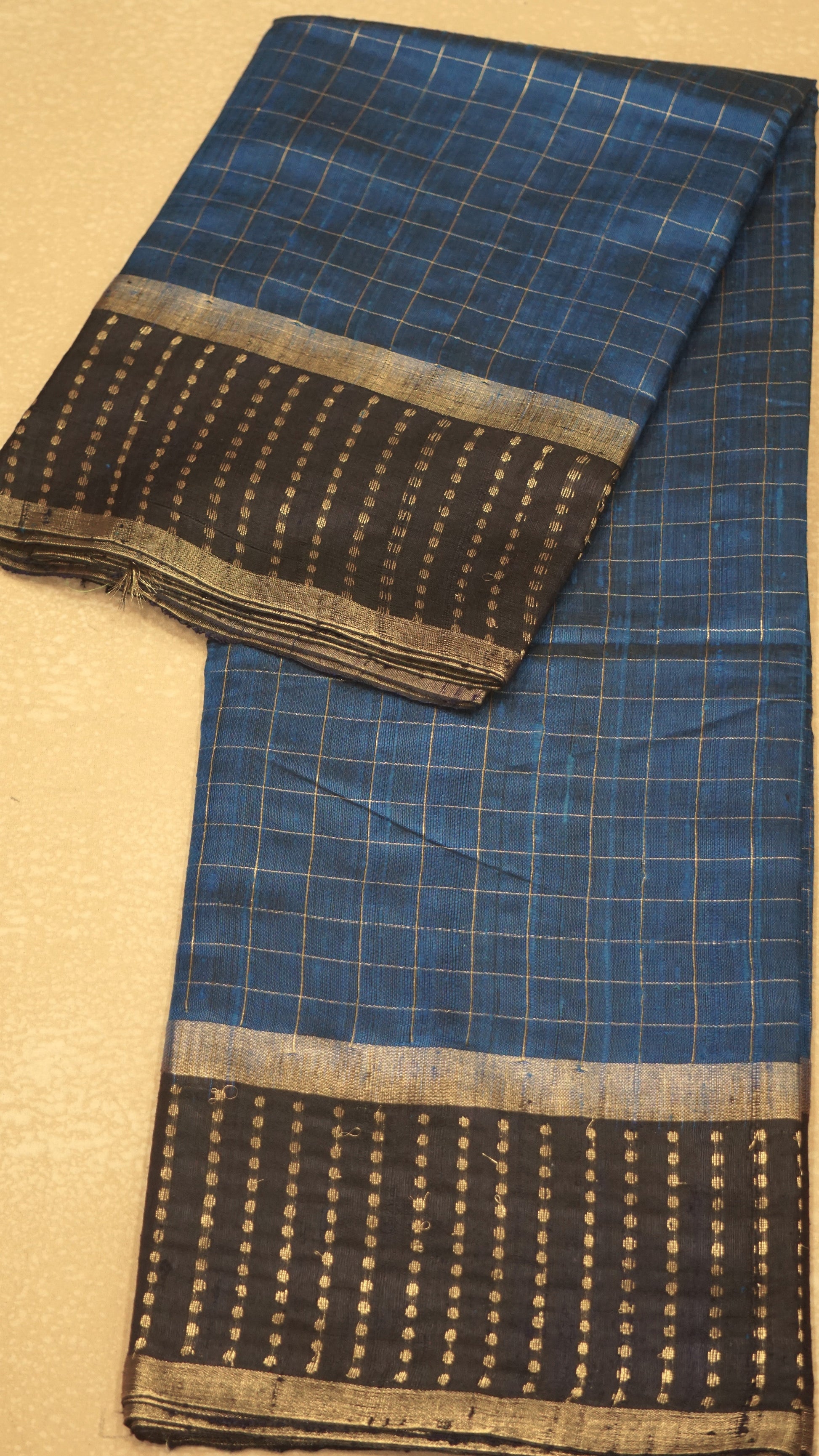 Pure Dupion Silk Saree Checks - Peacock Blue with Navy Blue Border