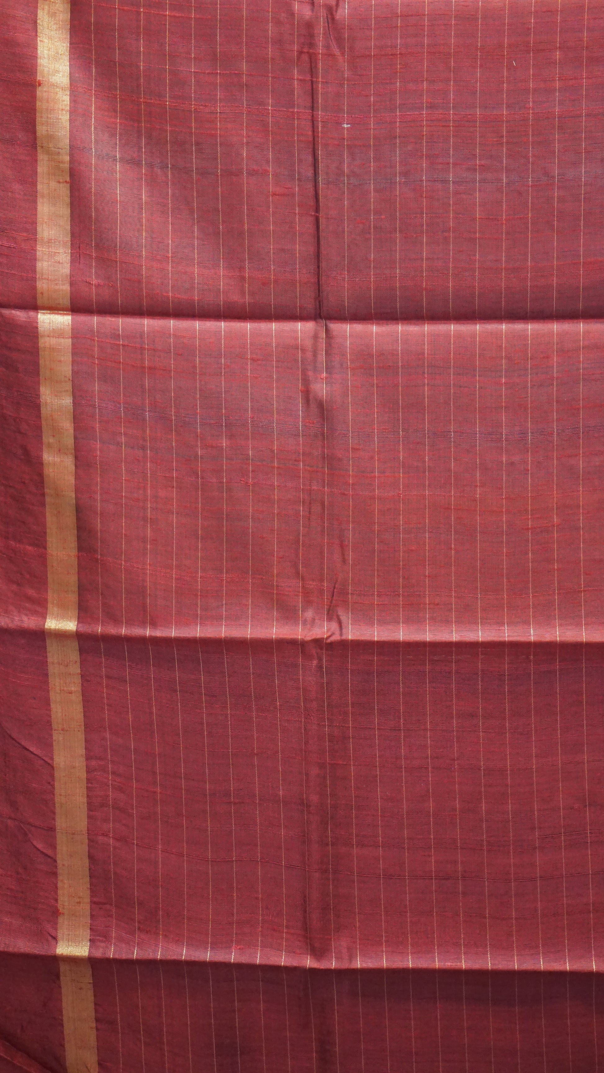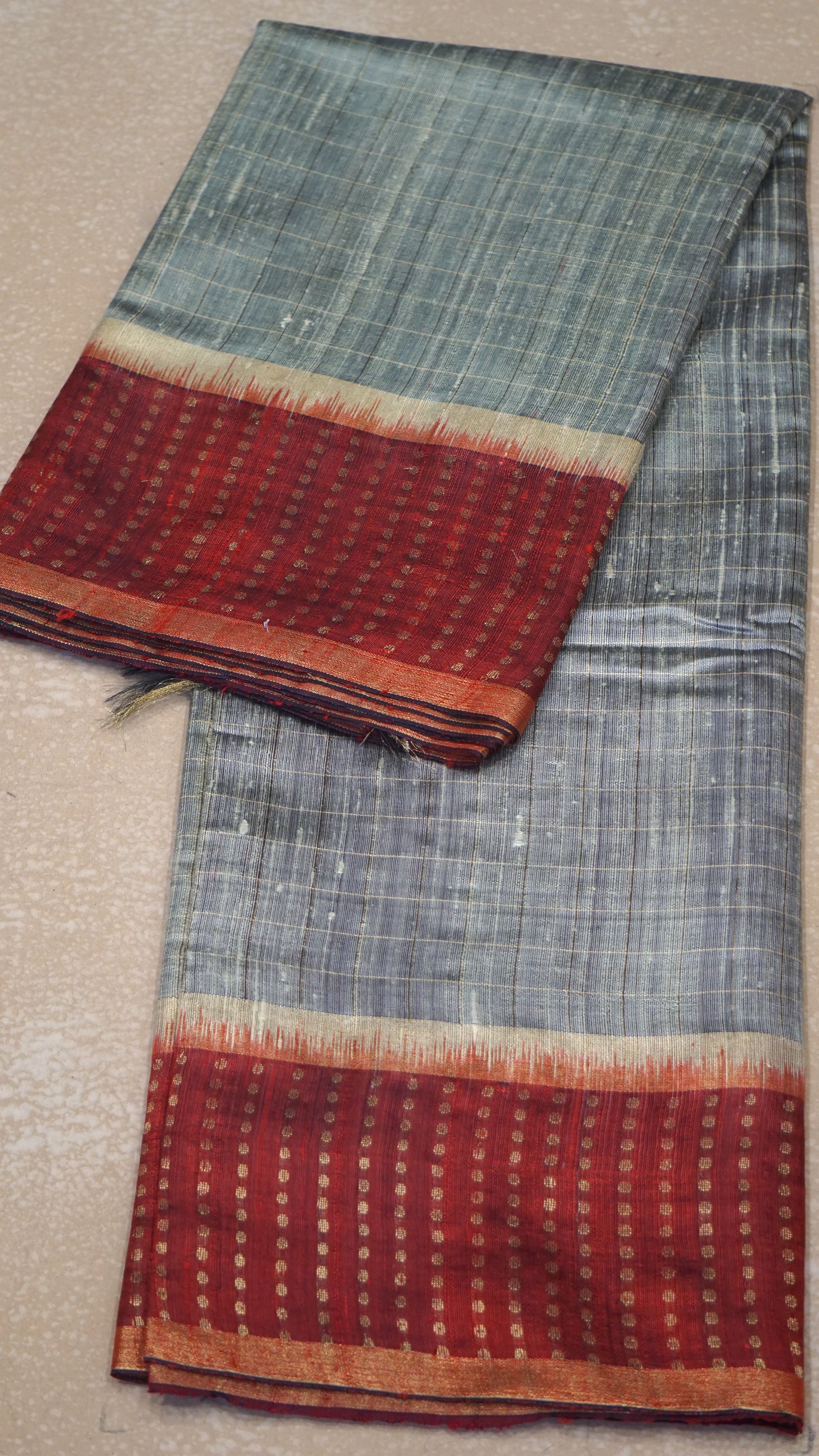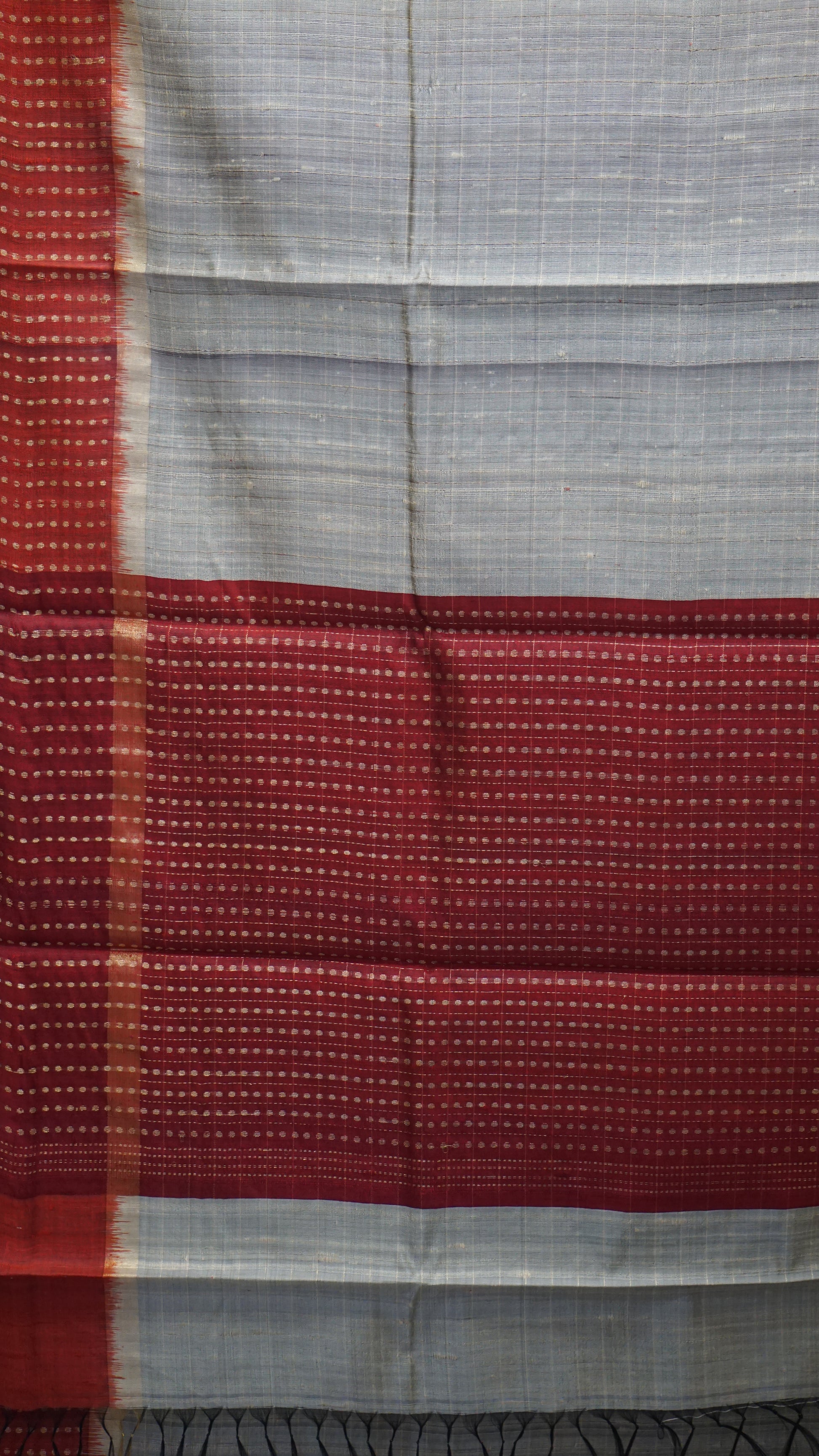 Pure Dupion Silk Saree Checks - Cream With Maroon Border