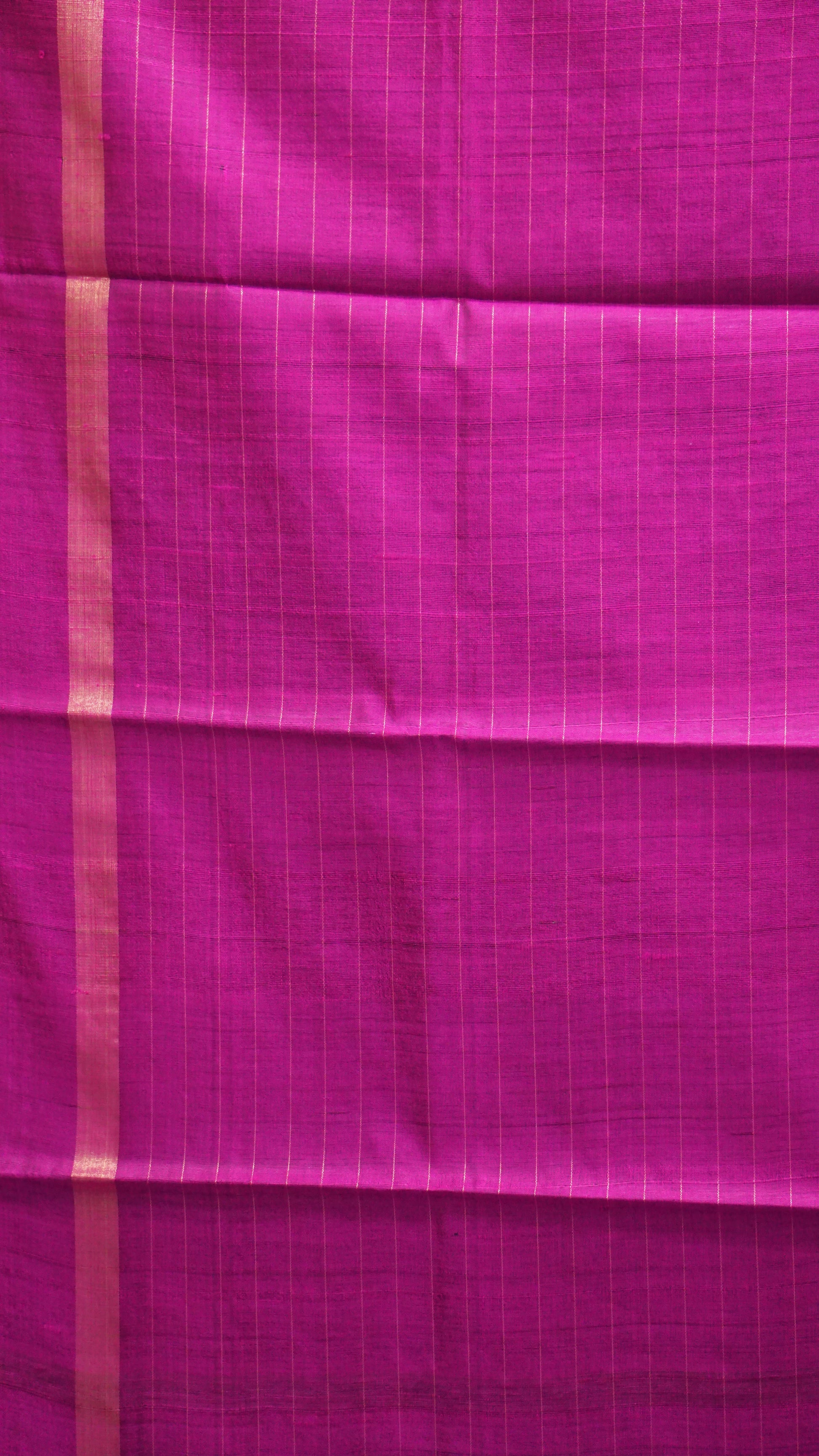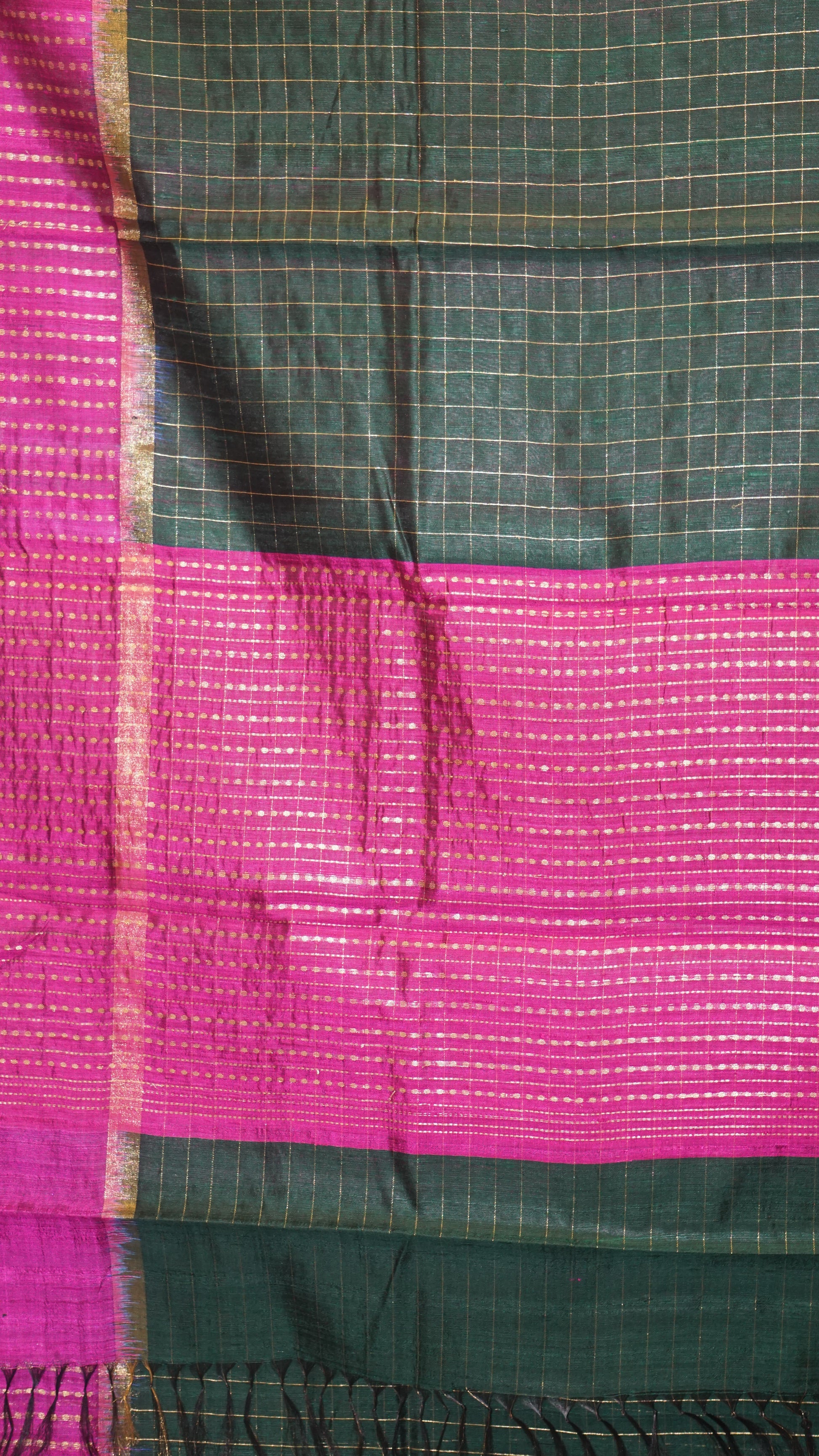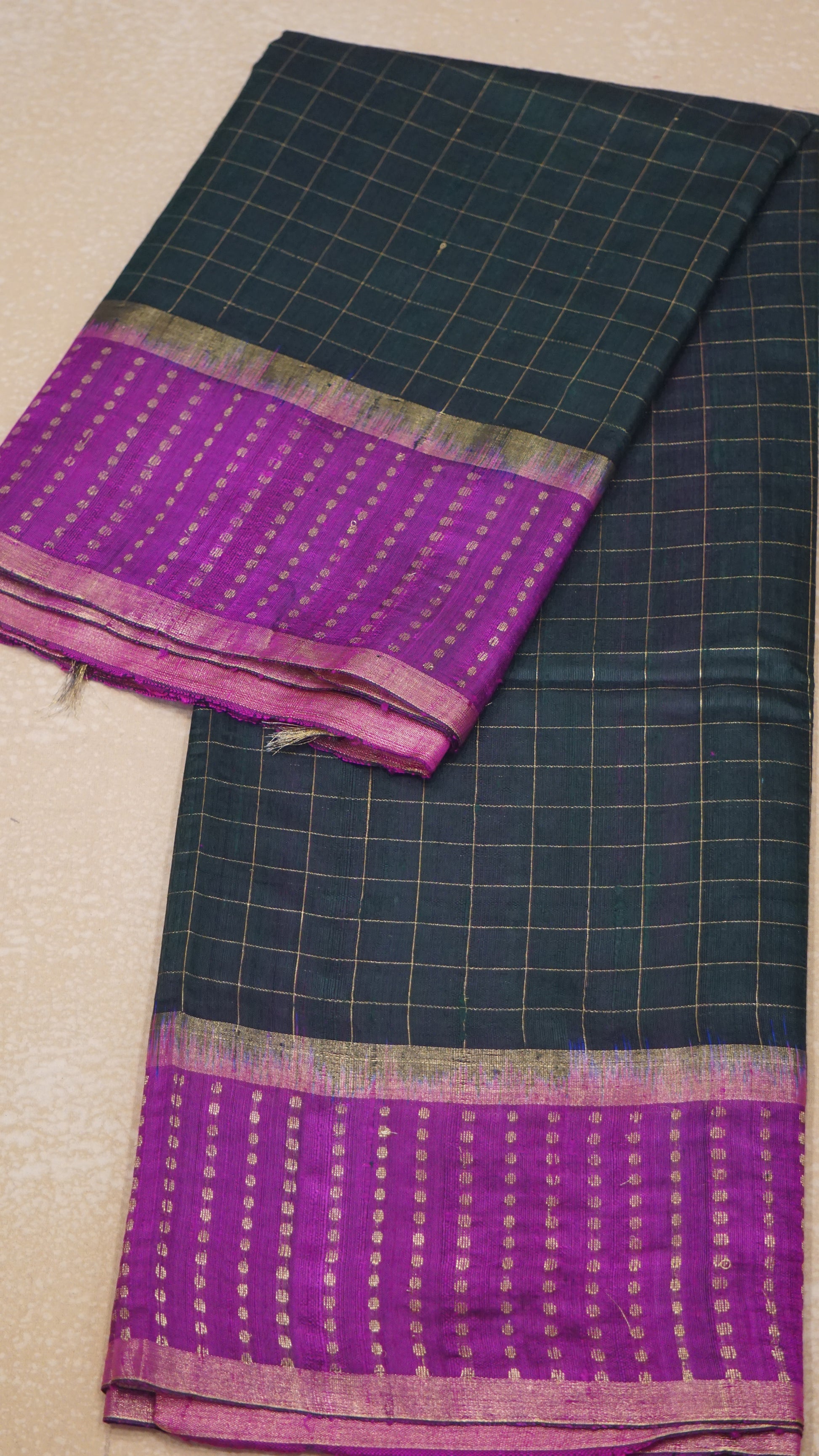 Pure Dupion Silk Saree Checks - Green with Purple Border