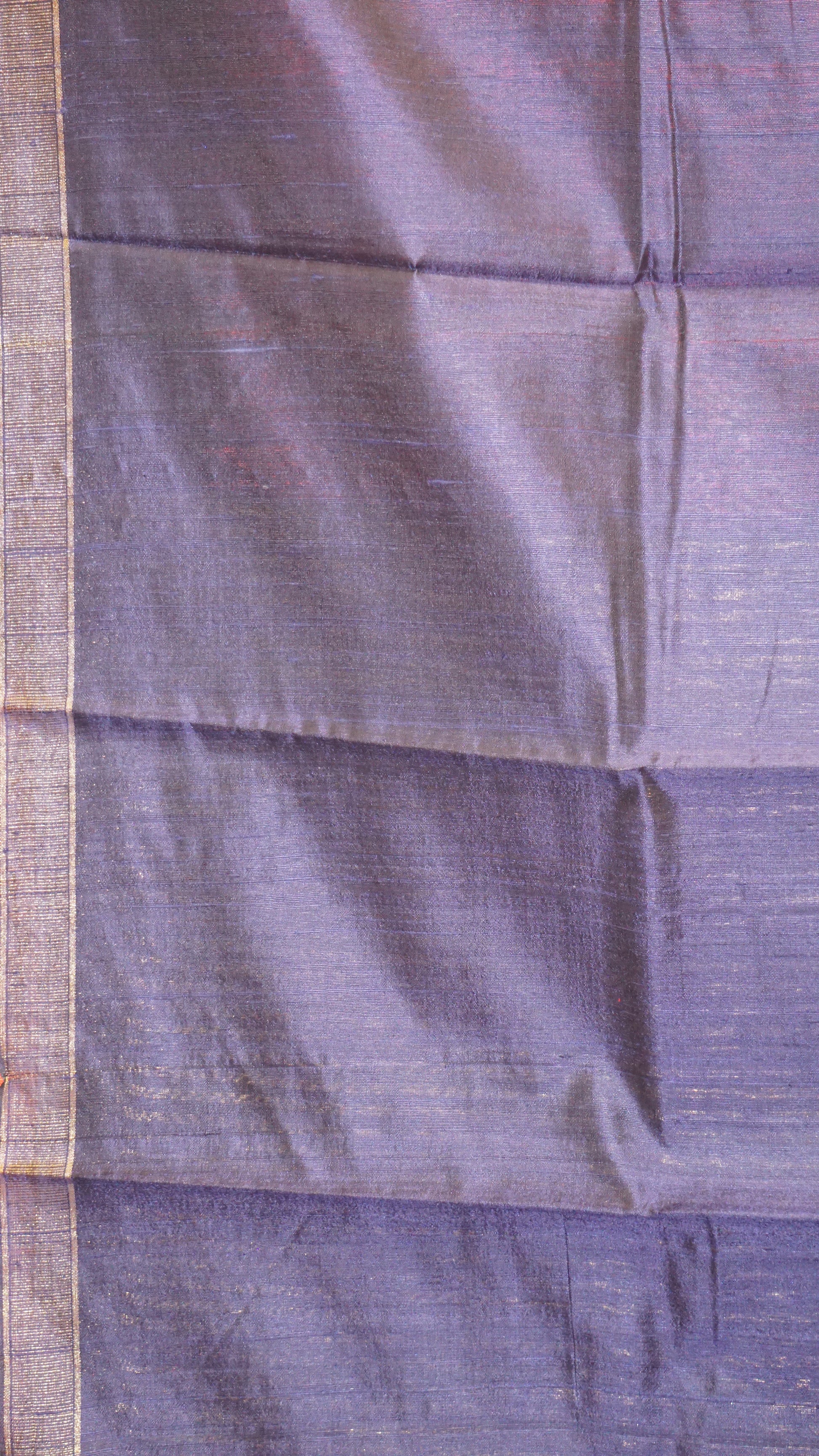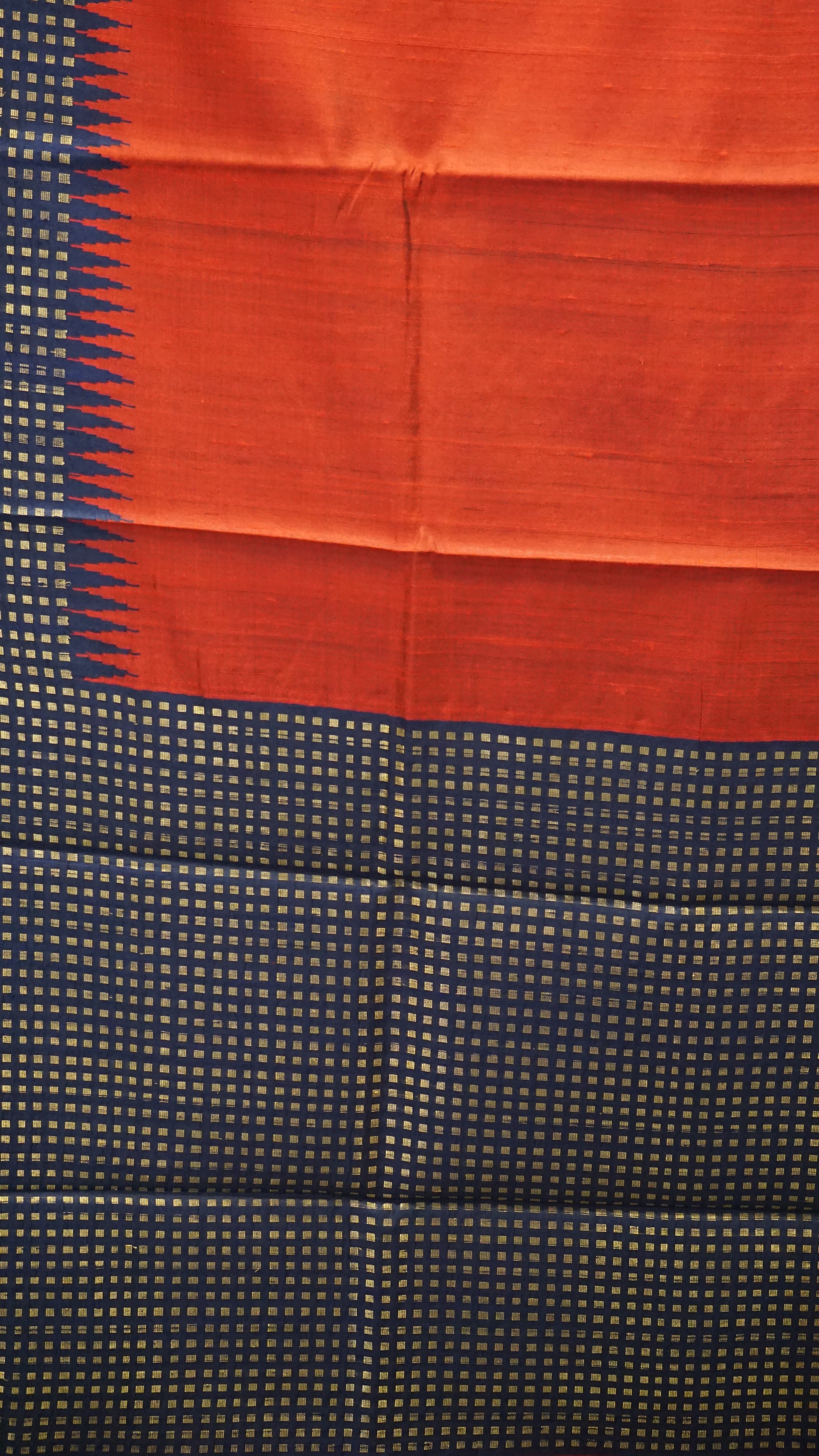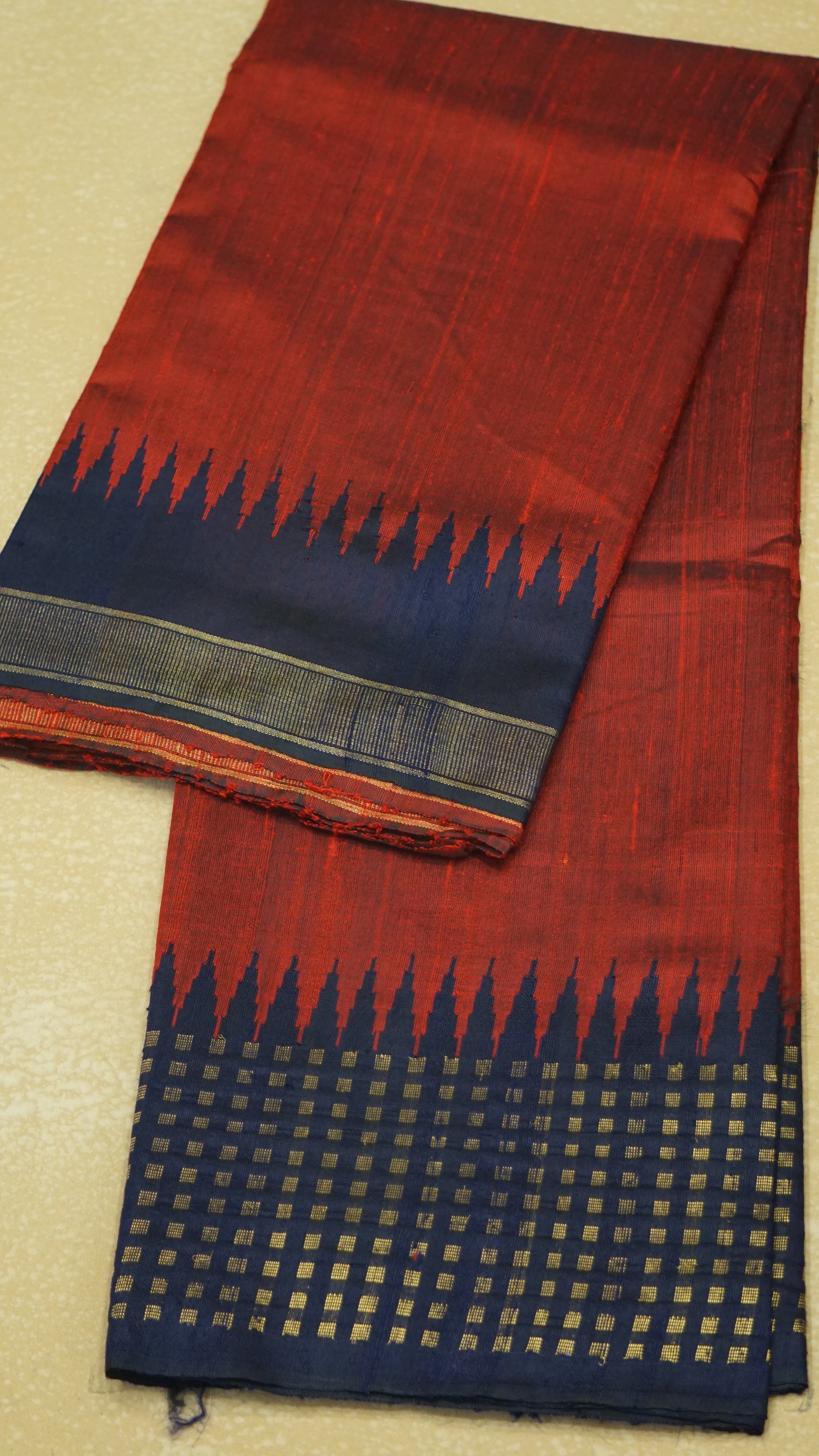 Pure Dupion Silk Saree - Maroon with Navy Blue Border