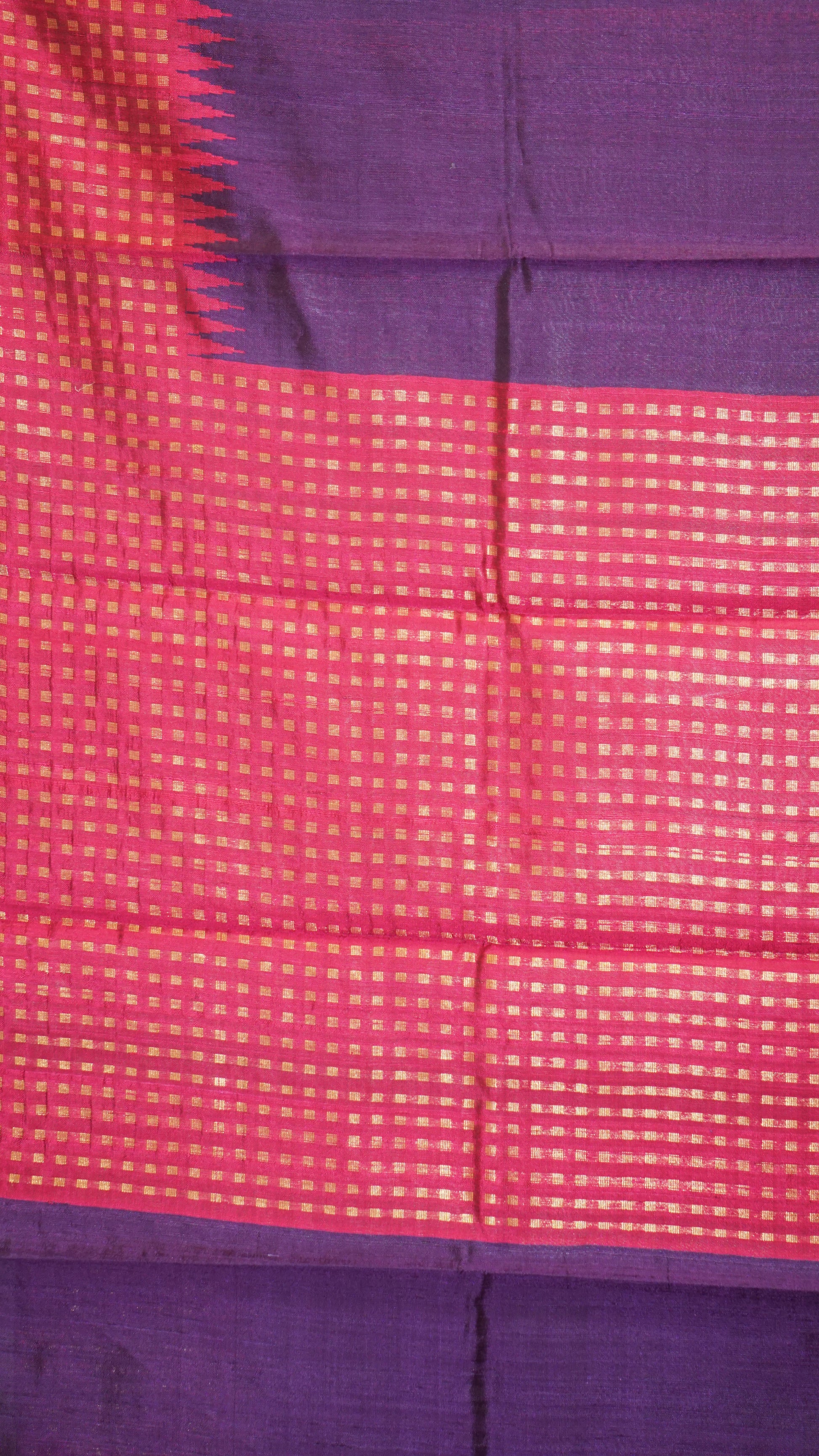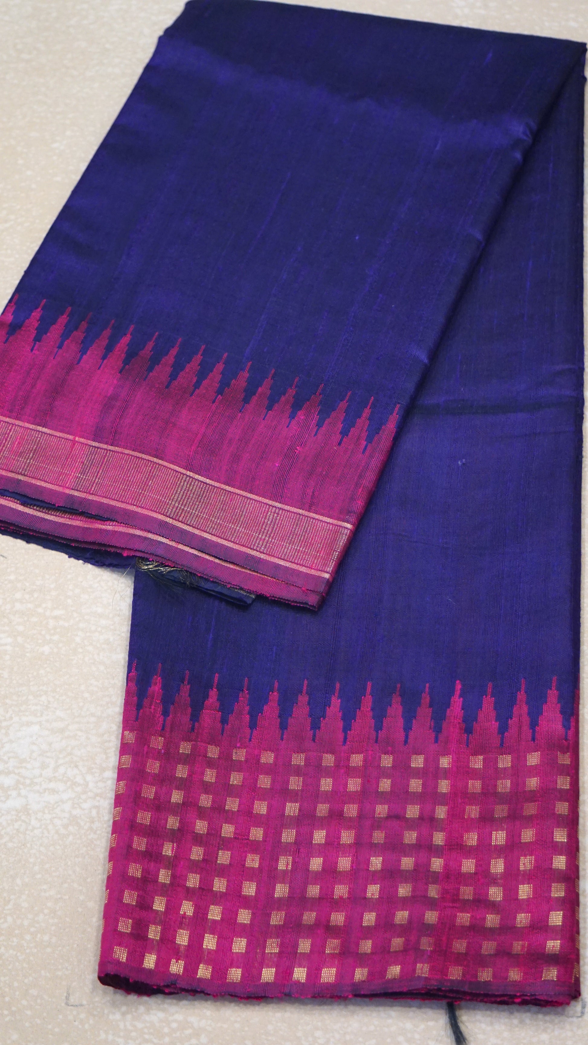 Pure Dupion Silk Saree - Navy Blue with Pink Border