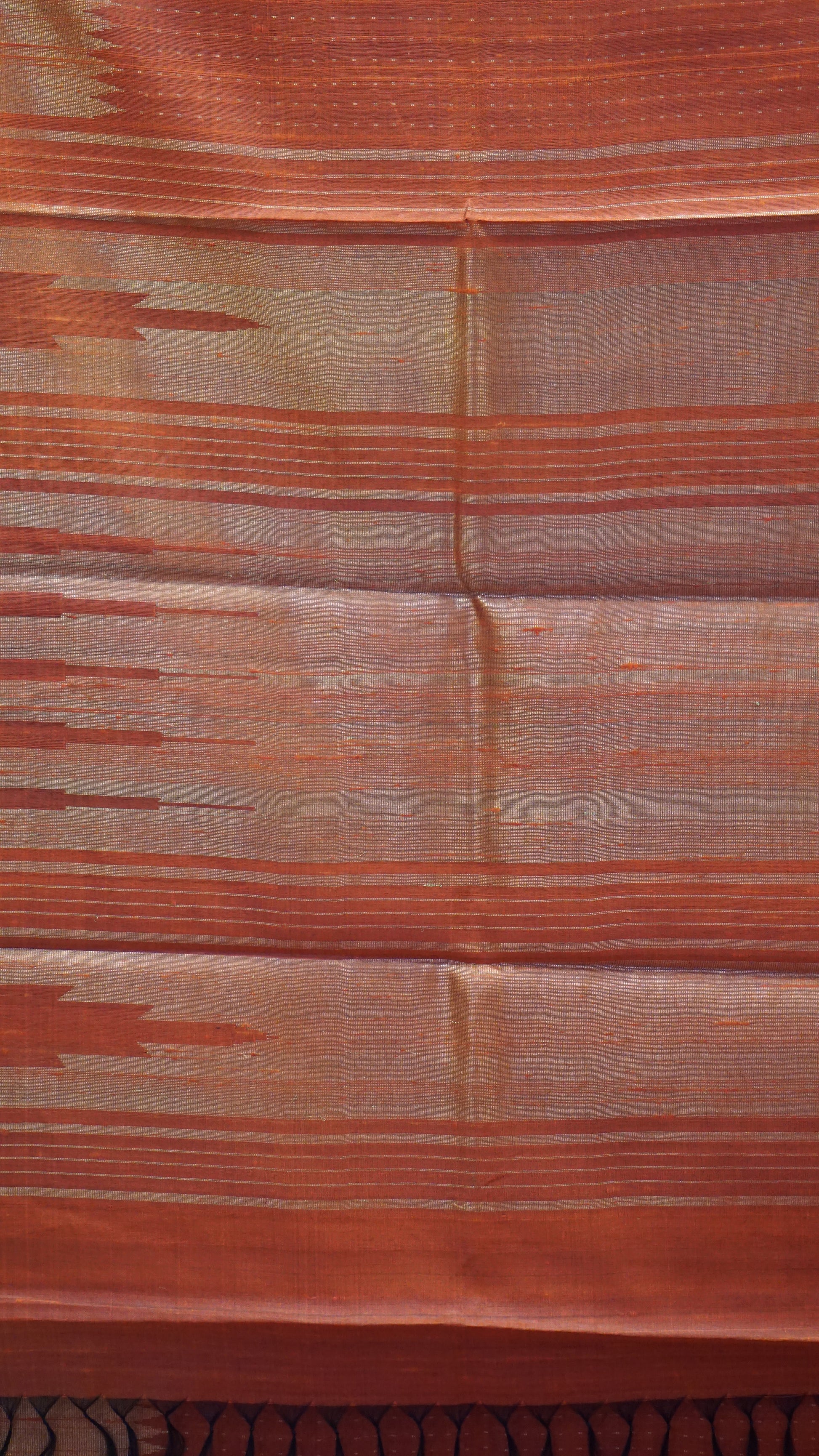 Pure Dupion Silk Saree - Orange with Gold Zari