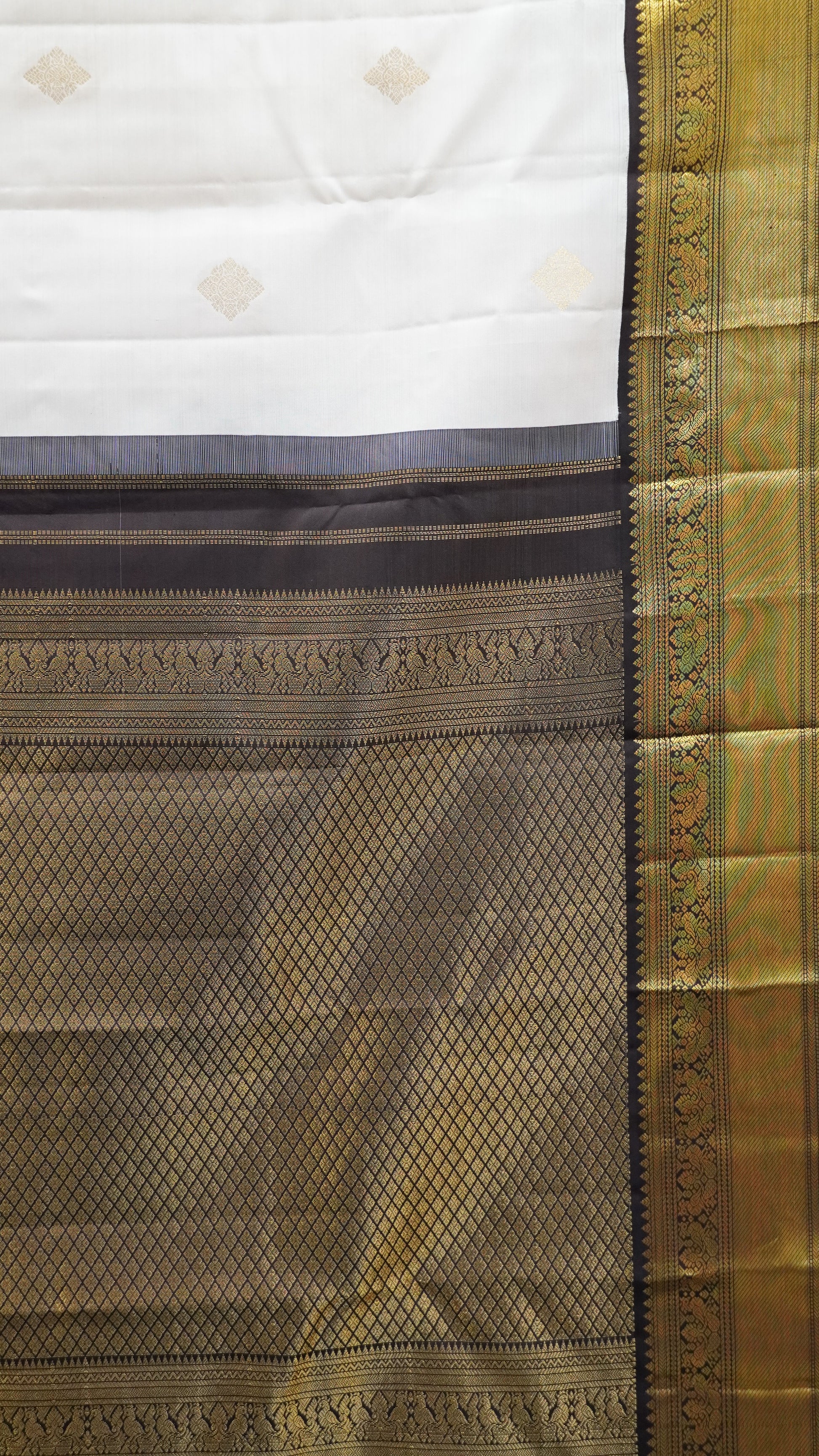 Pure Kanjivaram Korvai Silk Saree-Off White-Brown