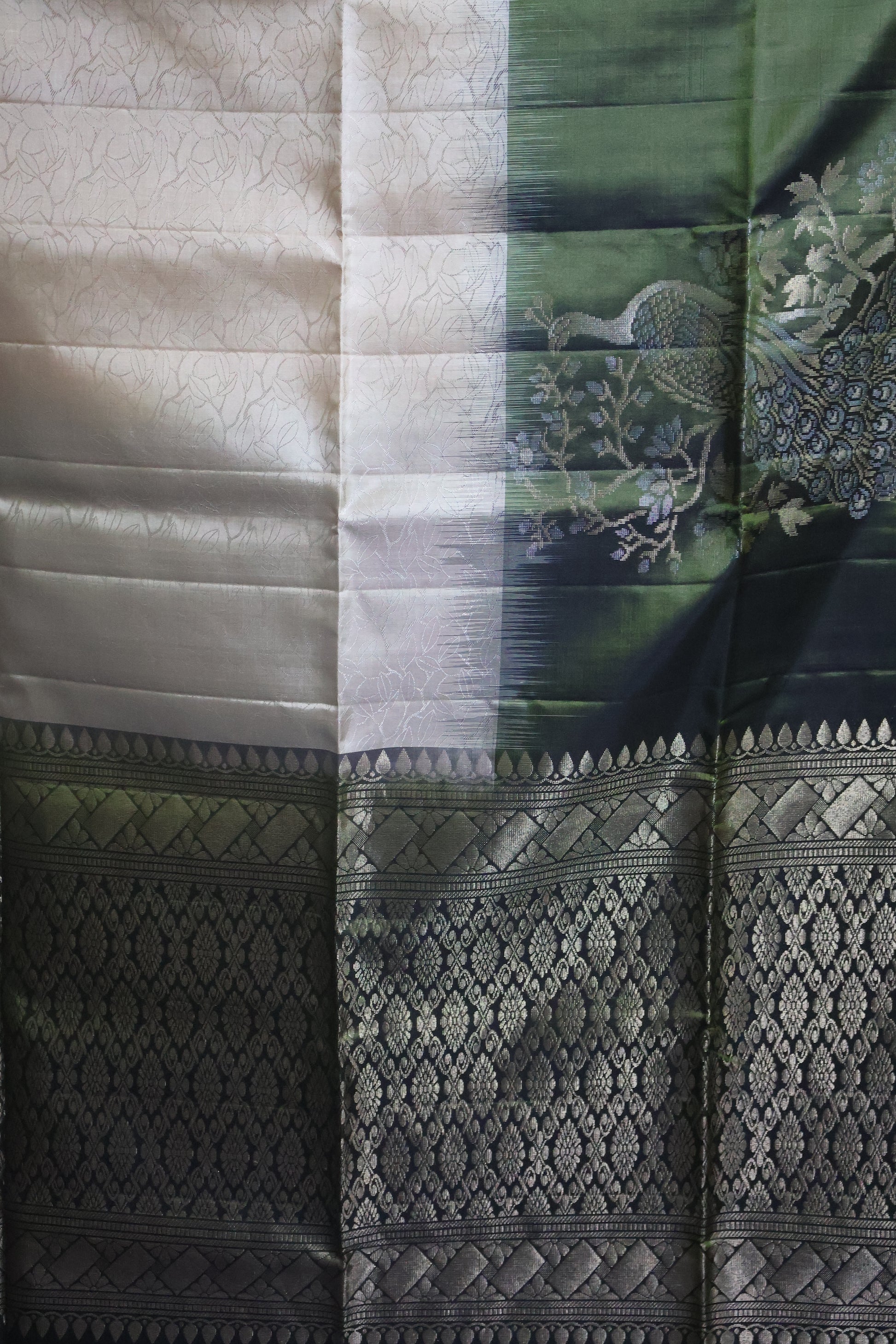 Pure Kanjivaram Silk Saree -Beige Peacock Zari