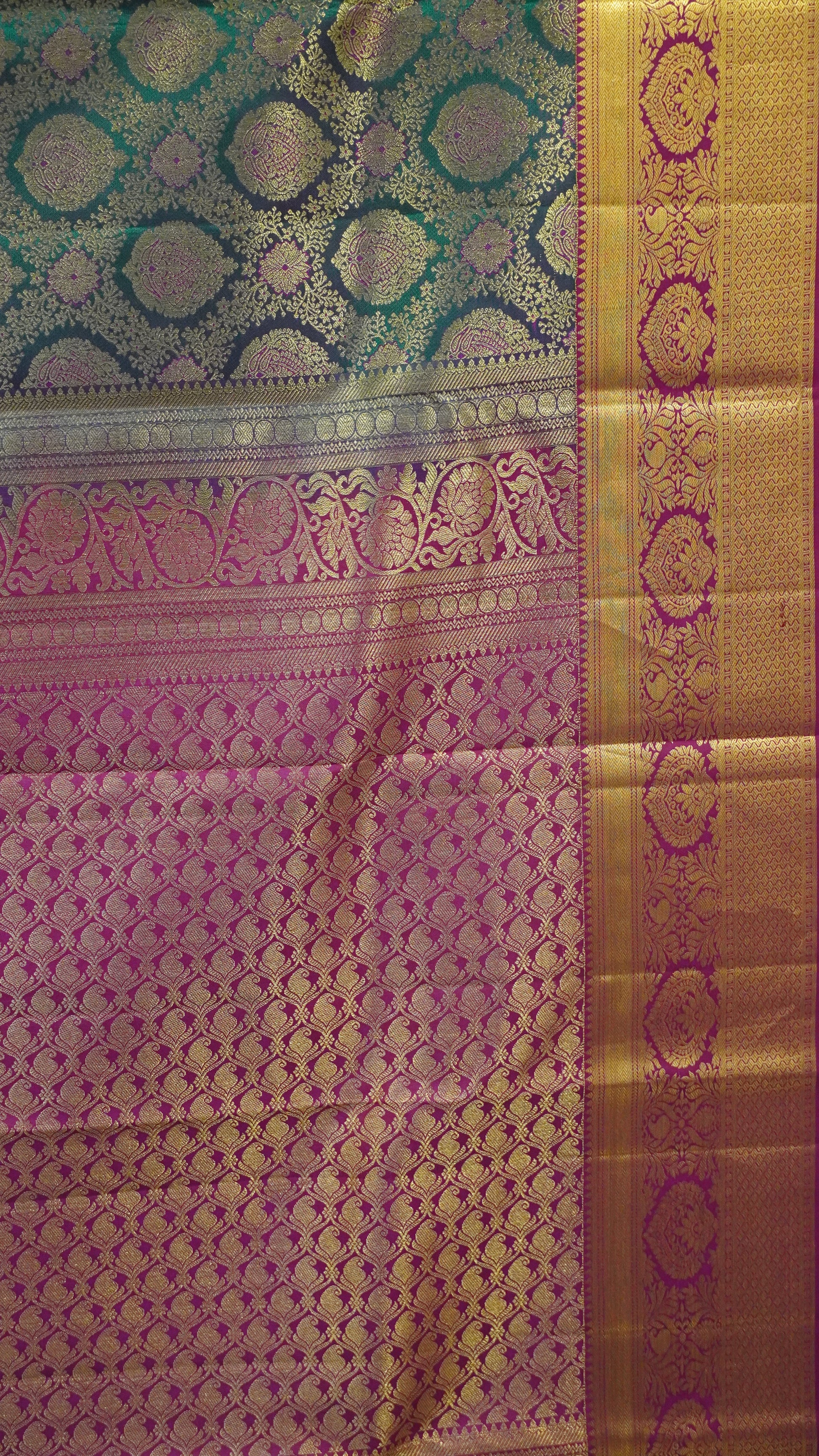 Pure Kanjivaram Silk Saree-Bottle Green Brocade Silk