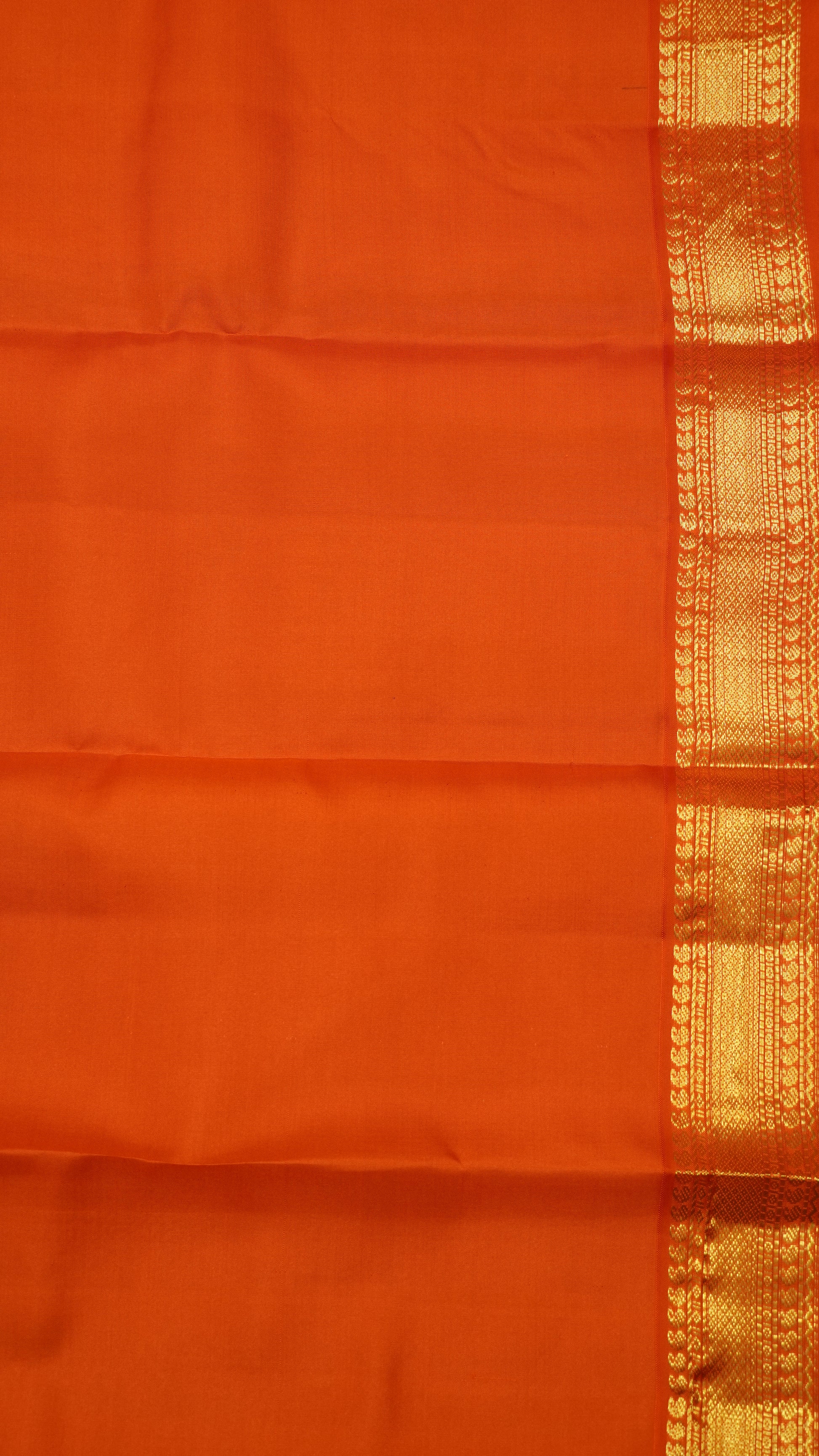 Pure Kanjivaram Silk Saree - Peacock Blue-Orange