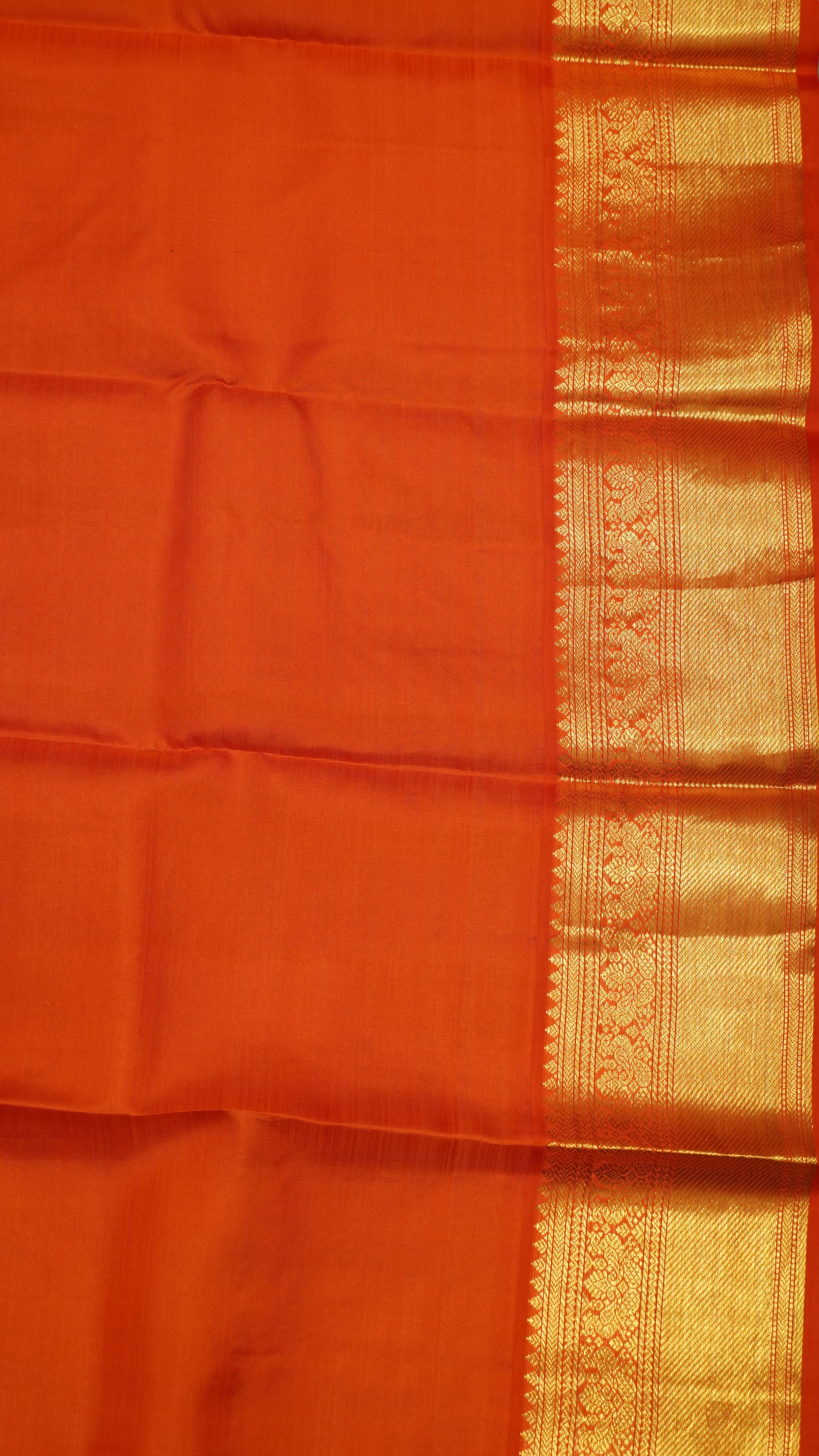 Pure Kanjivaram Silk Saree - Peacock Blue-Orange